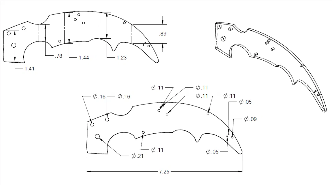Tui đang làm cái đồ chơi/mô hình dựa trên con dao Espada (size lớn) của hãng Cold Steel - bản bóng loáng (link đến con dao thật mà mô hình này dựa theo).