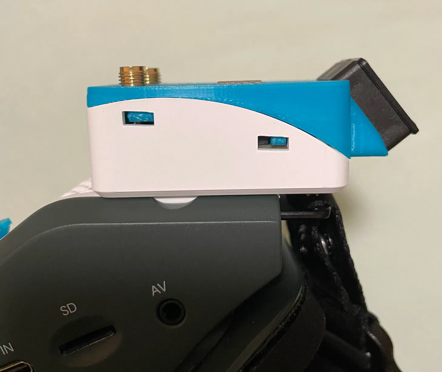 Đây là một cái cover (vỏ bọc) cho bộ thu Skyzone Steadyview X có màn hình và nút xoay, dùng vừa cho khoang module analog của kính HDZero.