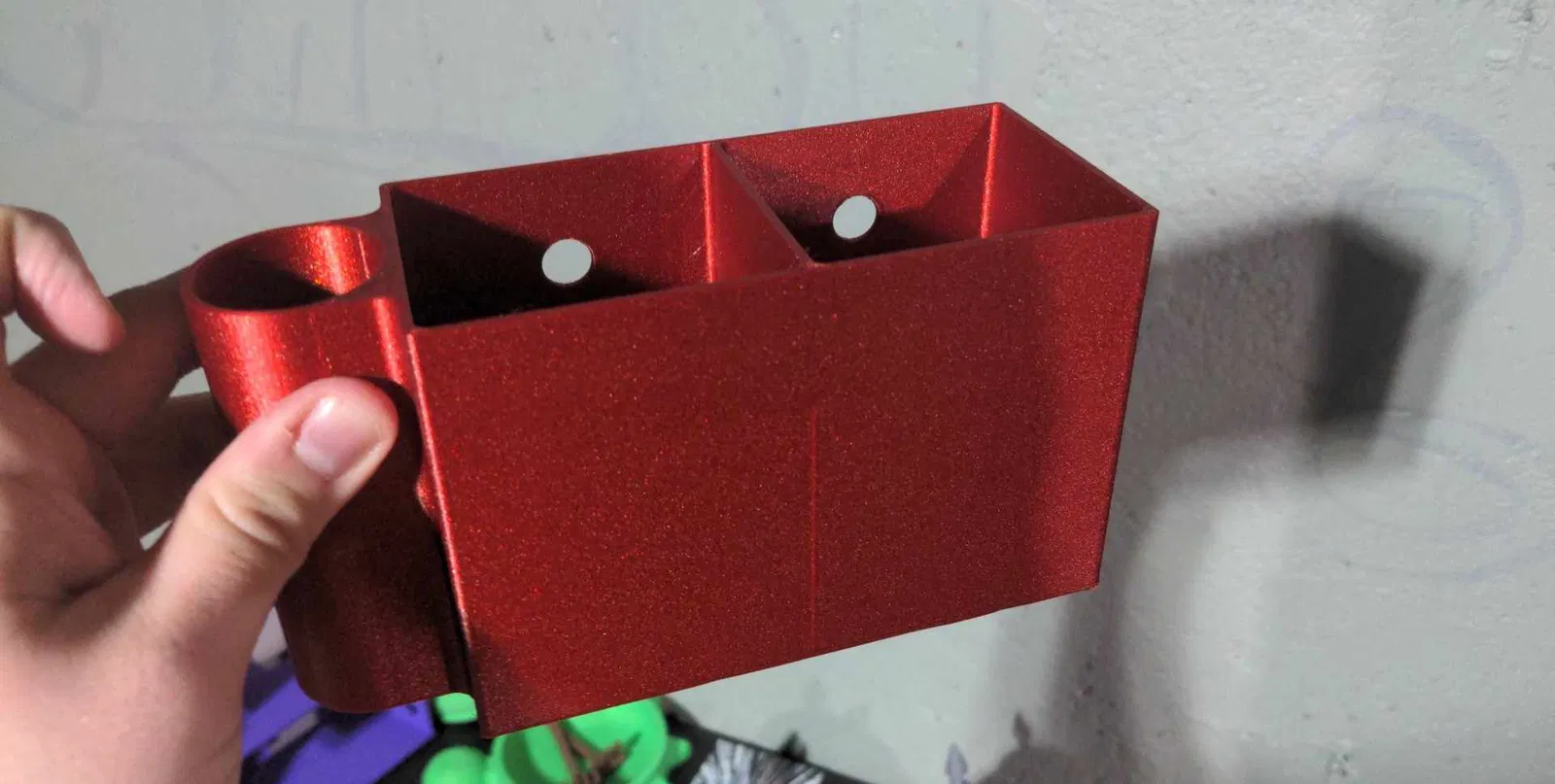 Giá đỡ bàn chải đánh răng và giỏ đựng đồ phòng tắm treo tường. Có hai phiên bản, có thể treo bằng móc Command hoặc móc treo tranh, có khe cắm bàn chải với lỗ thoát nước và hai ngăn đựng đồ.