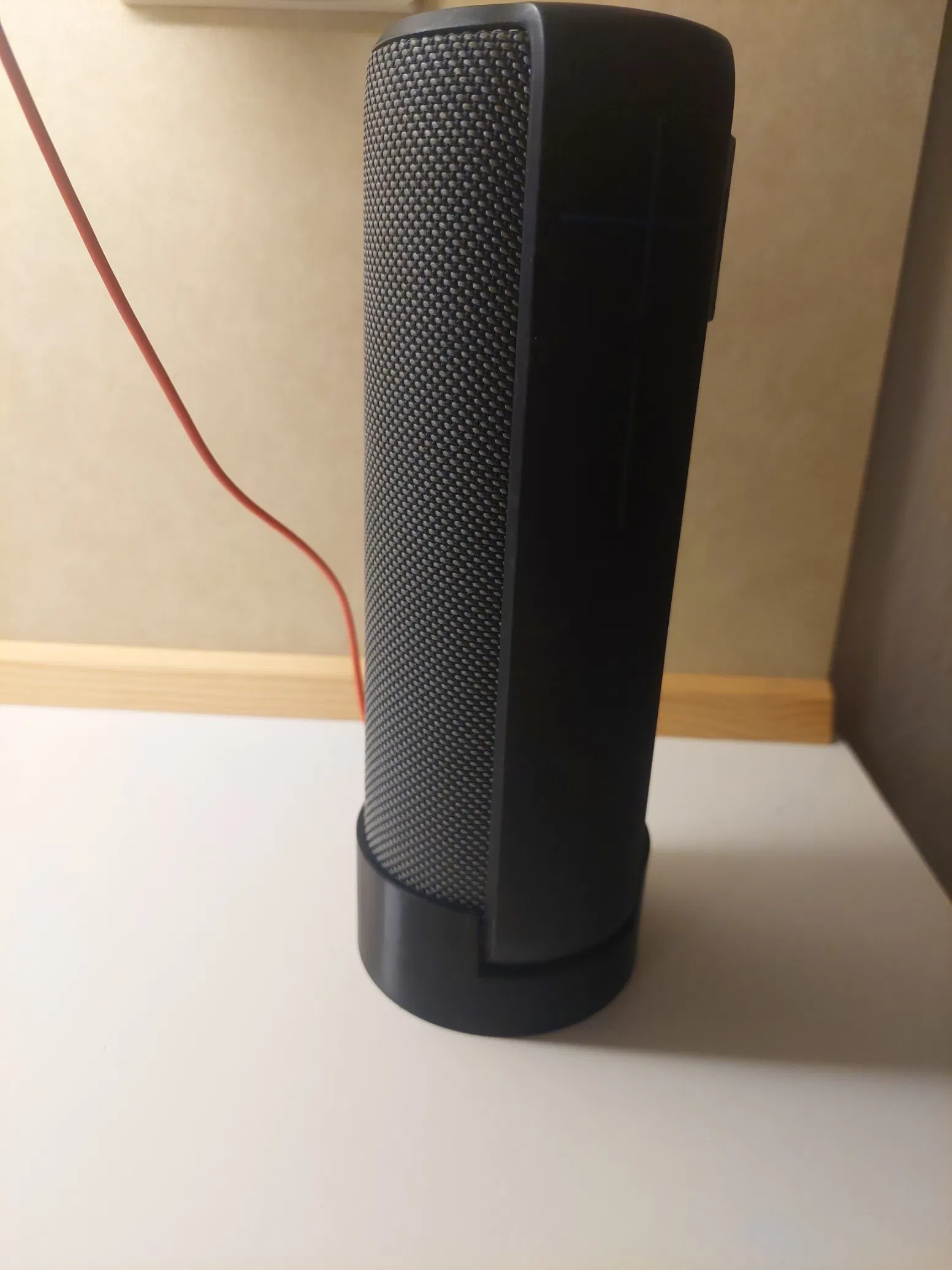 Giá đỡ giúp giữ loa đứng thẳng khi sạc, có chỗ để dây cáp tiện lợi. Phiên bản này có không gian ở dưới để cắm và quấn dây USB, giúp gọn gàng hơn.