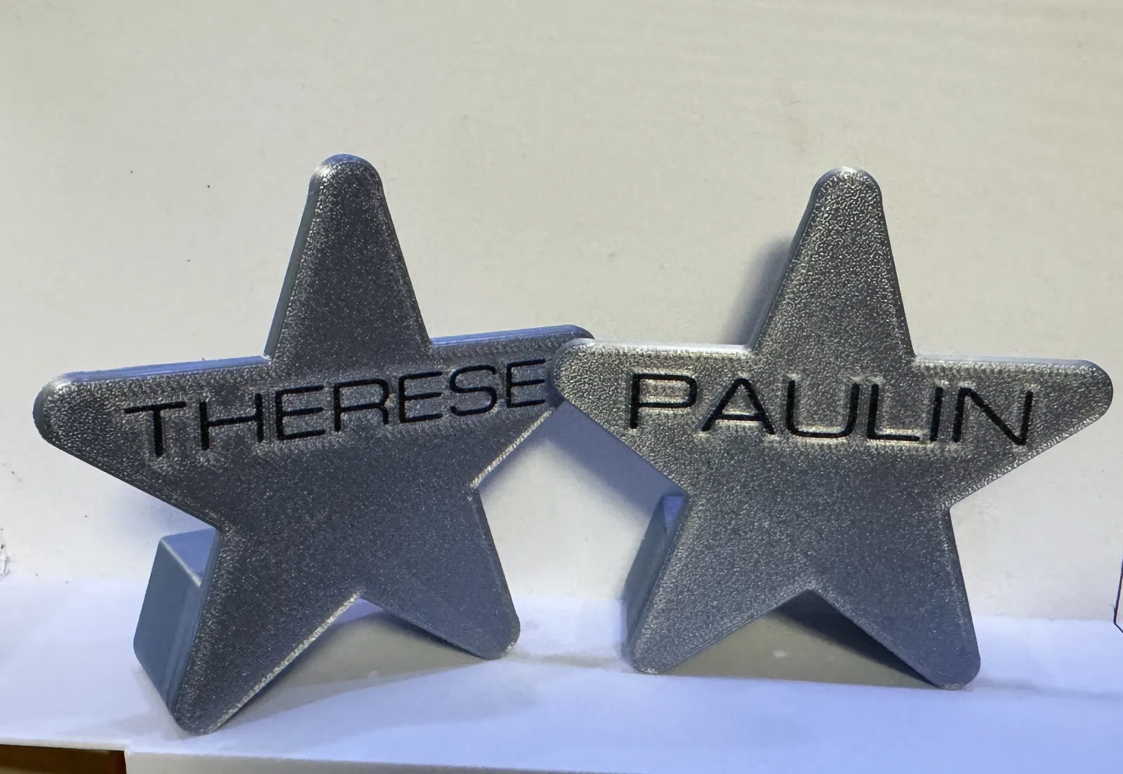 Một hình ngôi sao đơn giản bạn có thể khắc tên lên, dùng làm biển tên đặt trên bàn tiệc. Có thể tùy chỉnh thêm chữ bằng phần mềm cắt lát như Bambu Studio hoặc PrusaSlicer, đặt độ sâu nhúng 0.4mm, tô màu và thay đổi loại thành "modifier".