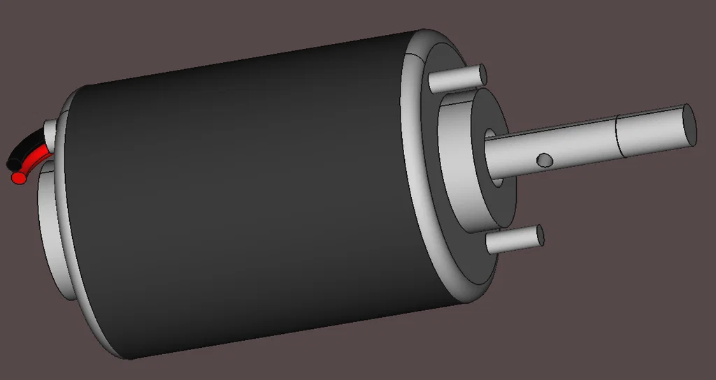 Đây là mô hình CAD giả của một động cơ DC thường được dán nhãn XD-3420. Nó có các phiên bản 12V và 24V, và được đánh giá ở mức 30 W và khoảng 2.5 A (vâng, cho cả hai điện áp. -- nên có lẽ công suất chỉ đúng cho phiên bản 12V).