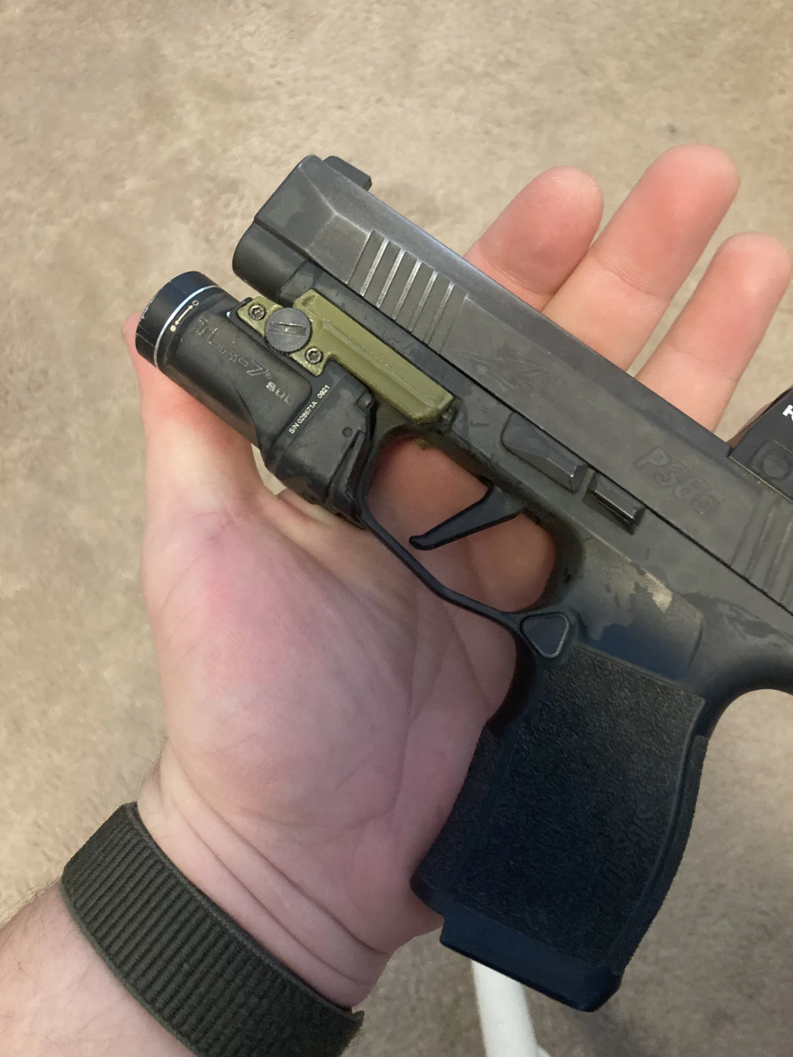 Phiên bản "Gaspedal" V2 cập nhật cho P365/TLR7sub, tích hợp tốt hơn. Miếng hỗ trợ ngón cái giúp kiểm soát độ giật, có thể in bằng kim loại hoặc nhựa chịu nhiệt.