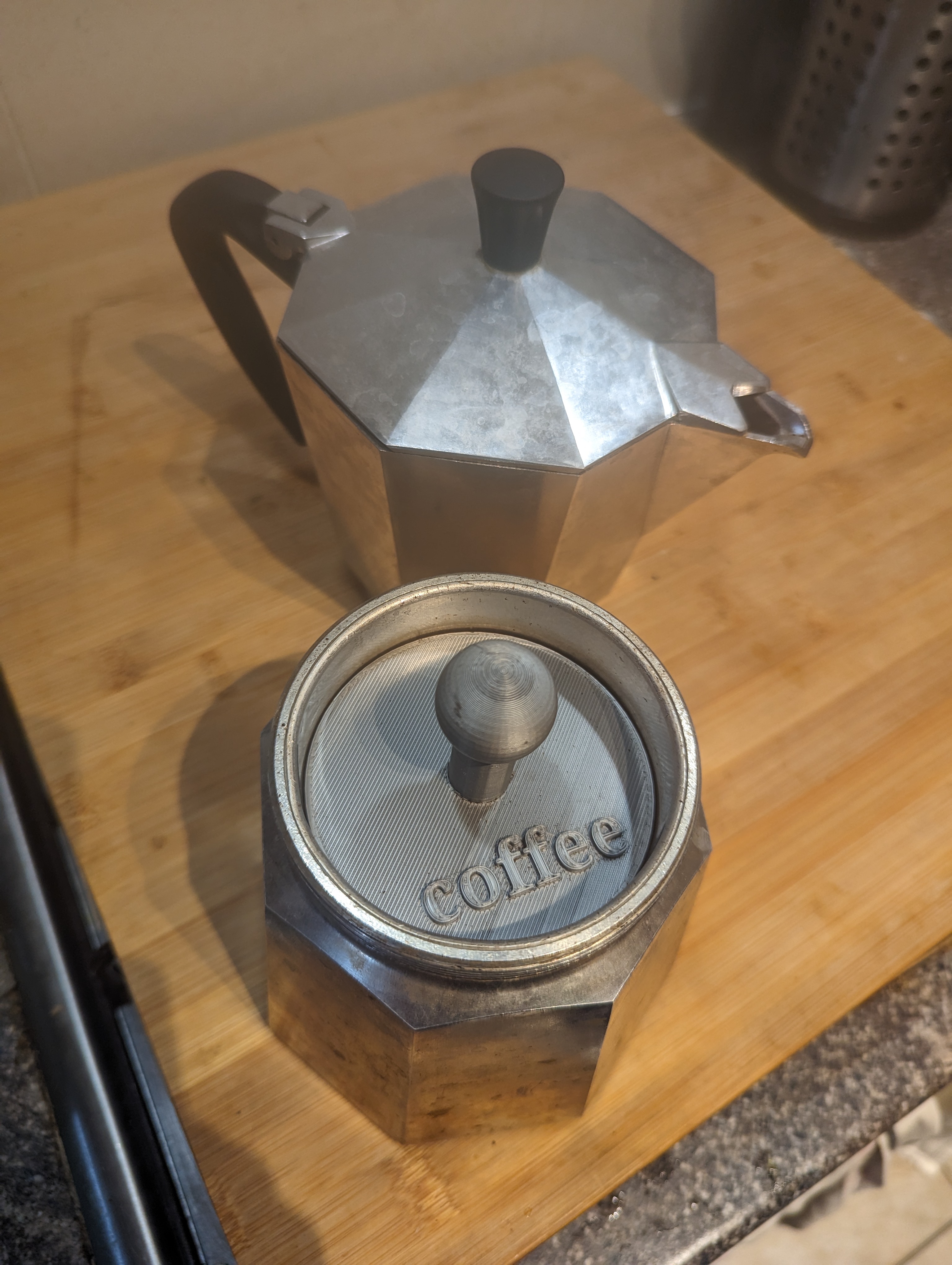 Cái đế ép này có bán kính 77.5 mm, dùng được cho máy pha cà phê kiểu Ý của mình. Mình khuyên nên in với độ dày vật liệu (fill) cao (>30%) để đảm bảo bạn có thể ép cà phê mà không sợ bị bể nha.