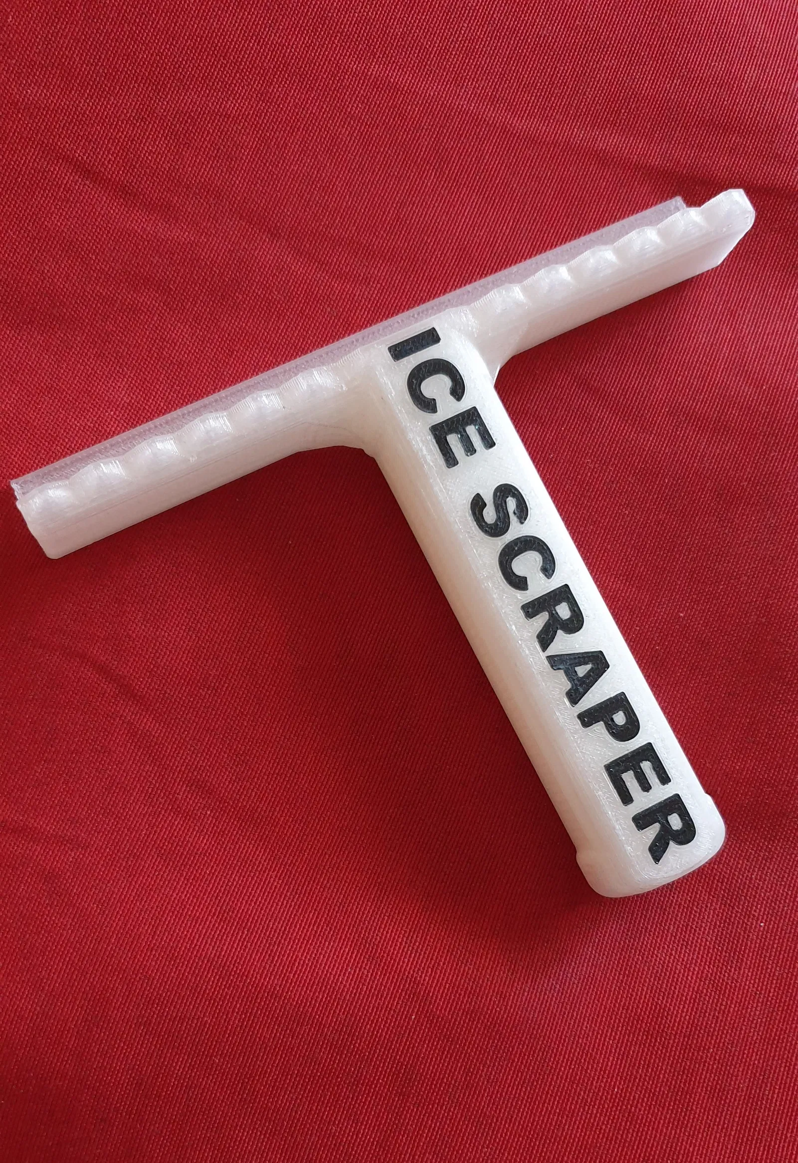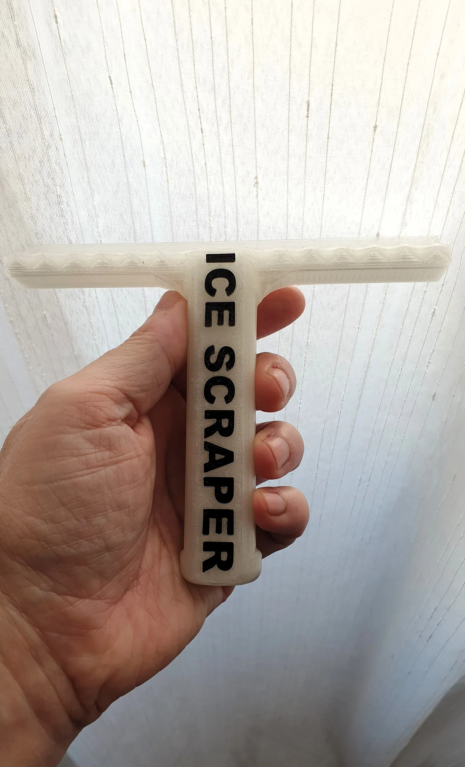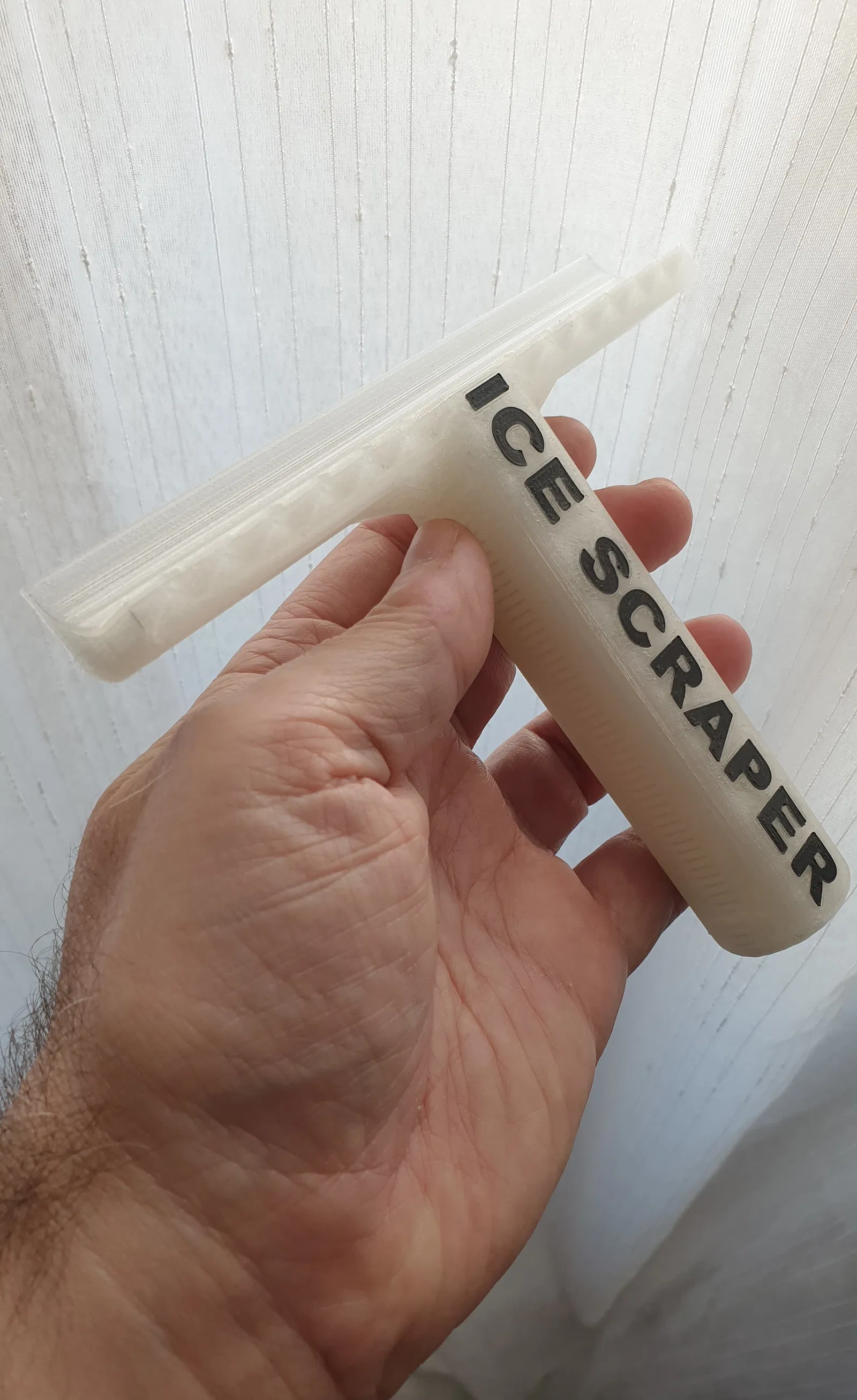 Trong những ngày lạnh giá này, còn gì bằng một cái cào băng mới siêu cứng cáp lại còn có tay cầm giải phẫu nữa chứ. Nó có hai phần riêng biệt; một phần để cào lớp băng cứng nhất và một phần để làm sạch lớp băng bám trên kính. Mỗi lần quẹt là phủ được bề ngang 15 cm. Nếu thích thì mấy bồ có thể dán mấy chữ mình để riêng trong file STL lên nữa nha. In không cần support, đổ đầy tối thiểu 60% để tăng độ cứng cáp nha.