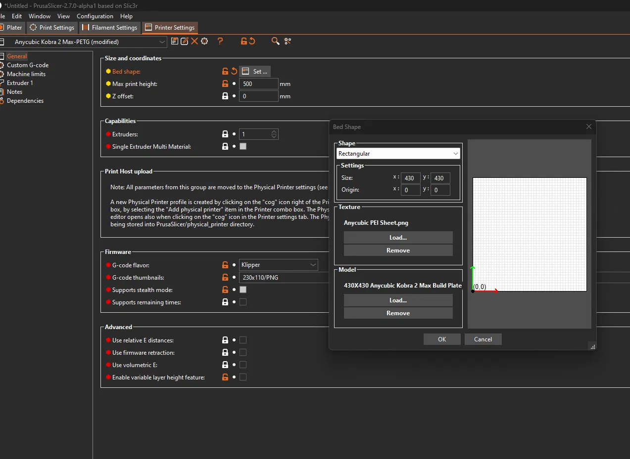 Tấm lót máy in Anycubic Kobra 2 Max phiên bản gốc. Bao gồm khuôn và vân tấm lót, cung cấp các tùy chỉnh hữu ích cho slicer, giúp quá trình in ấn của bạn diễn ra suôn sẻ và hiệu quả hơn.