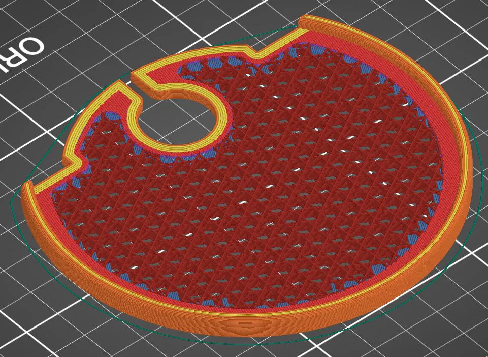 Điều này sẽ làm cho khu vực bên dưới modifier chỉ hiển thị infill — một vẻ ngoài "lưới" — mà không có lớp trên hoặc dưới.