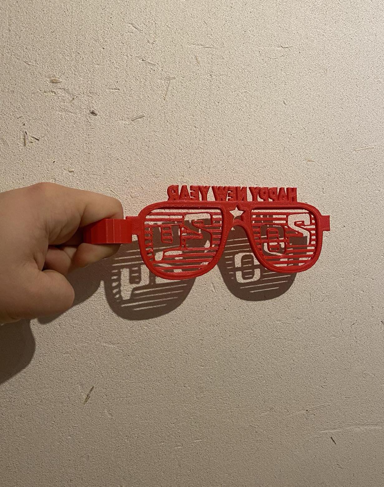 Chiếc kính 3D in độc đáo, bạn có thể cầm bằng một ngón tay, cực kỳ tiện lợi cho các buổi tiệc mừng Năm Mới 2024. Phù hợp cho cả hai tay trái và phải, mang không khí lễ hội đến mọi nhà.
