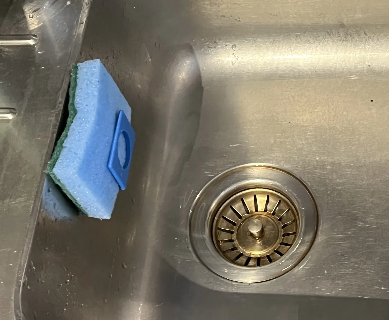Giá để miếng rửa chén đơn giản, thiết kế cho bồn rửa chén Ikea Vatudalen. Lưu ý cẩn thận để không làm chặn lỗ thoát tràn.
