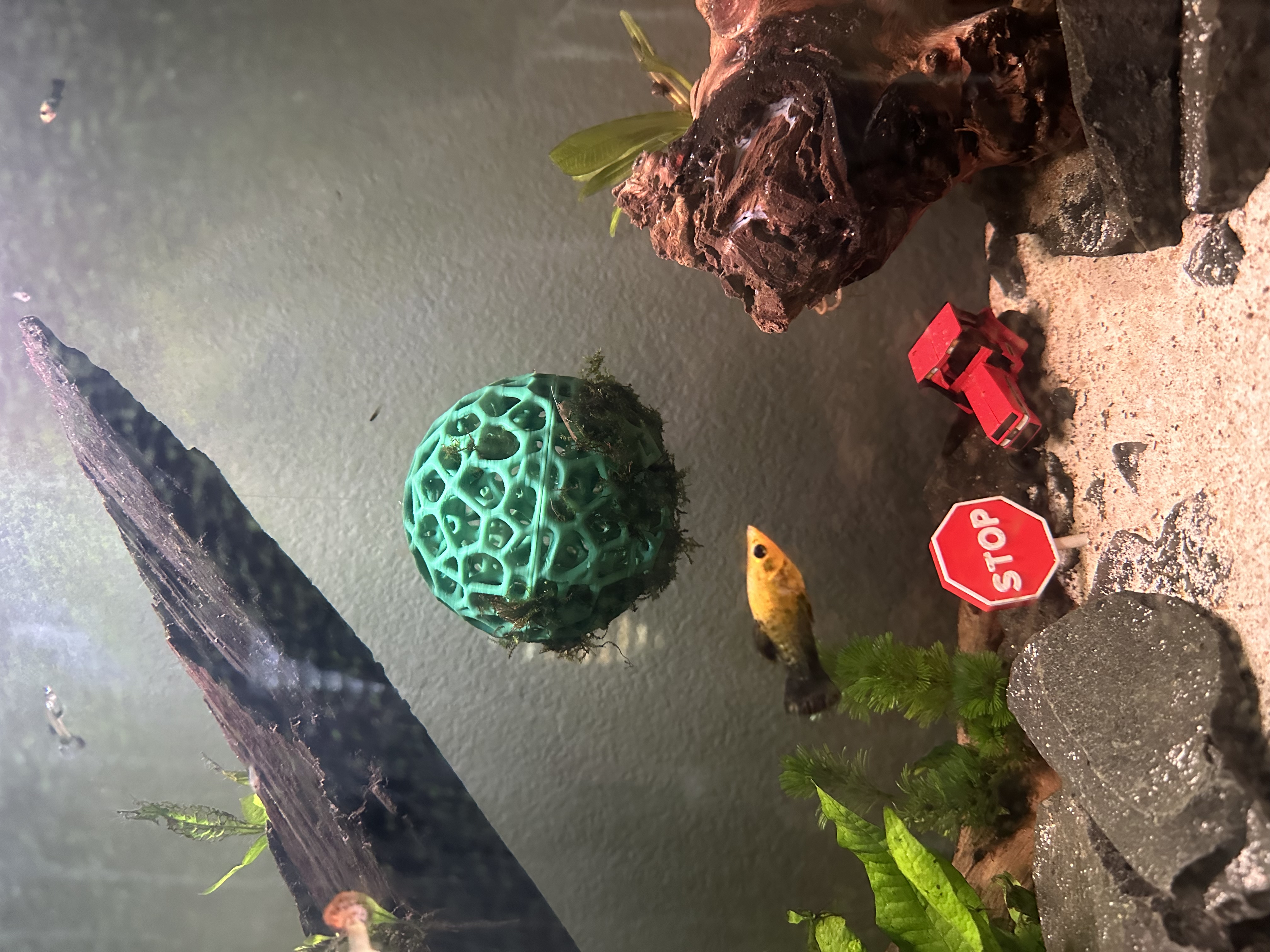 Quả bóng lưới voronoi độc đáo dùng để trồng rêu thủy sinh hoặc làm đồ chơi cho mèo cưng. Cấu trúc hai lớp giúp rêu bám chắc, có thể dán hai nửa lại sau khi in. In không cần support.
