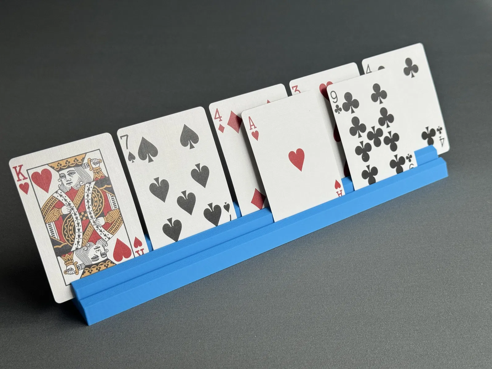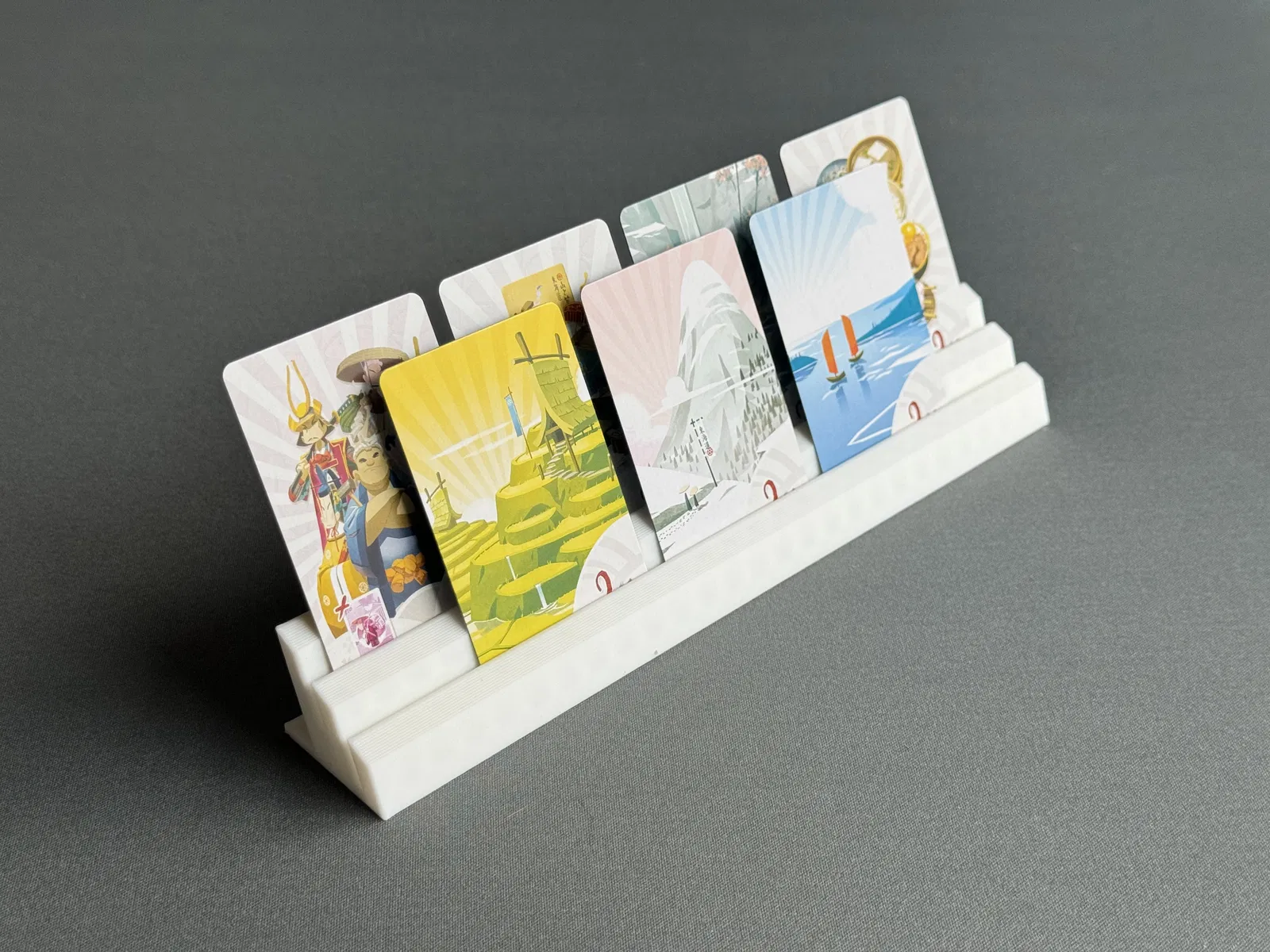 Không tìm được cái đế cắm bài nào ưng ý nên tự làm lấy luôn. Cái đế này cân bằng giữa dễ xài, dễ thấy bài mà lại nhỏ gọn. Dùng được cho cả bài có sleeve lẫn không sleeve. Có thể scale ngang tùy chỉnh kích thước cho phù hợp.