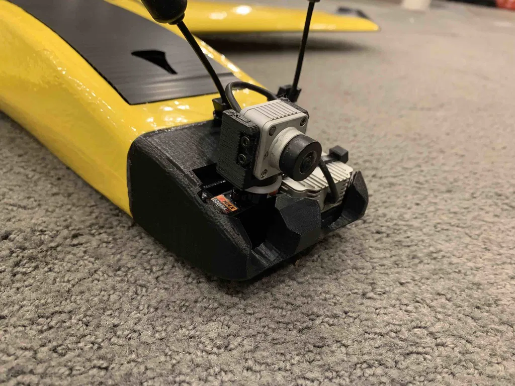 Mount mũi cho Ritewing Mini Drak cho DJI HD FPV air unit. Remixed từ mount cho runcam. Cố định bằng tí băng dính hai mặt, 1 sợi zip tie và keo nến dán camera vô.