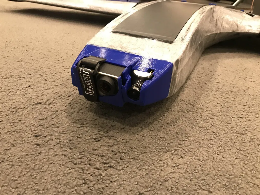 Cập nhật tháng 5 năm 2018: Đã thêm phiên bản mũi tù cho camera FPV để tránh bị thấy phần in trong góc nhìn FPV. Thiết kế này cho phép đi dây sạc và giấu dây, đồng thời phóng to khu vực cho camera FPV và làm rộng khe dán dây velcro.