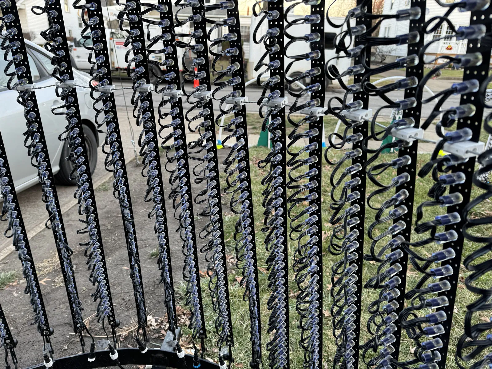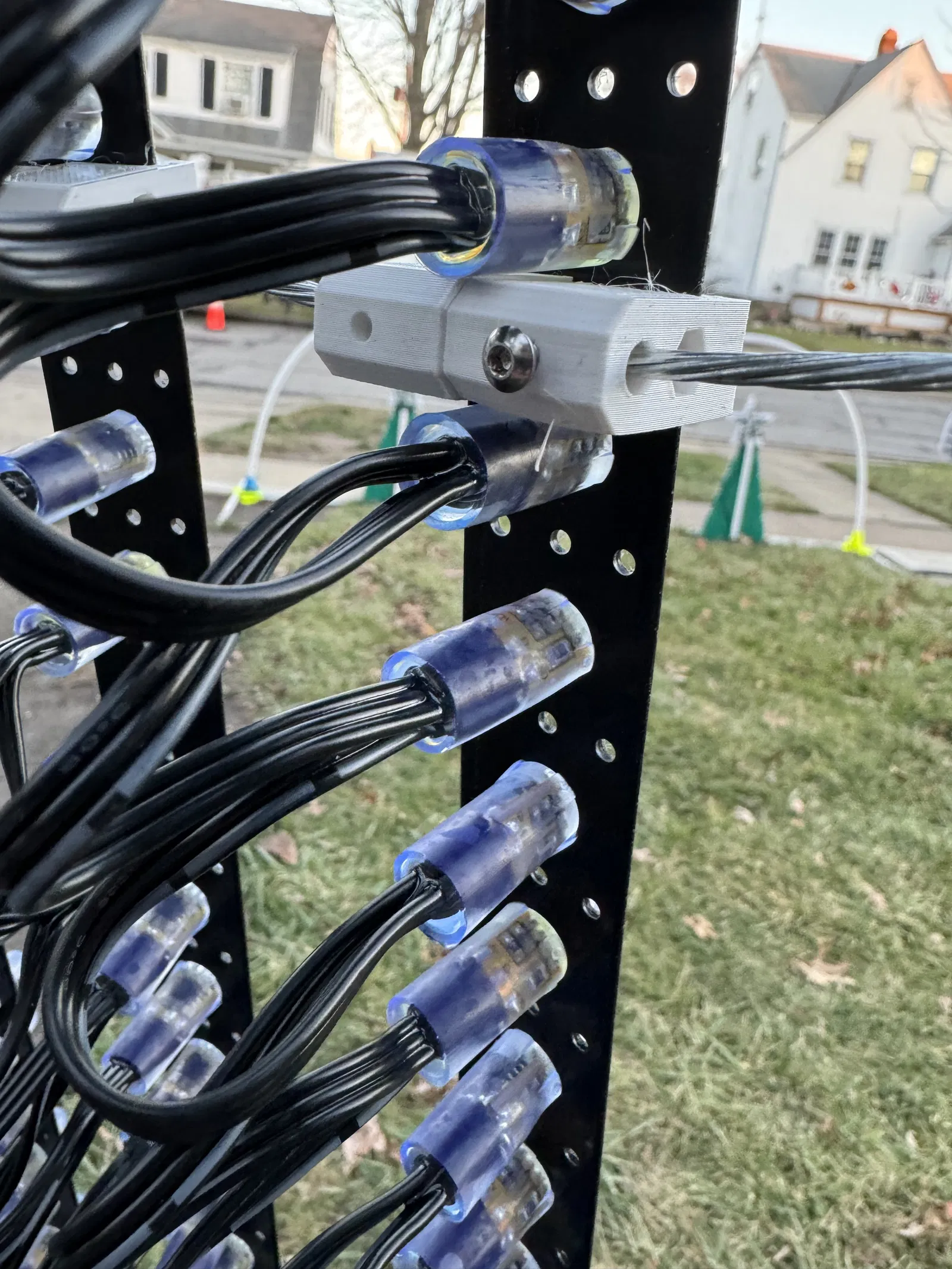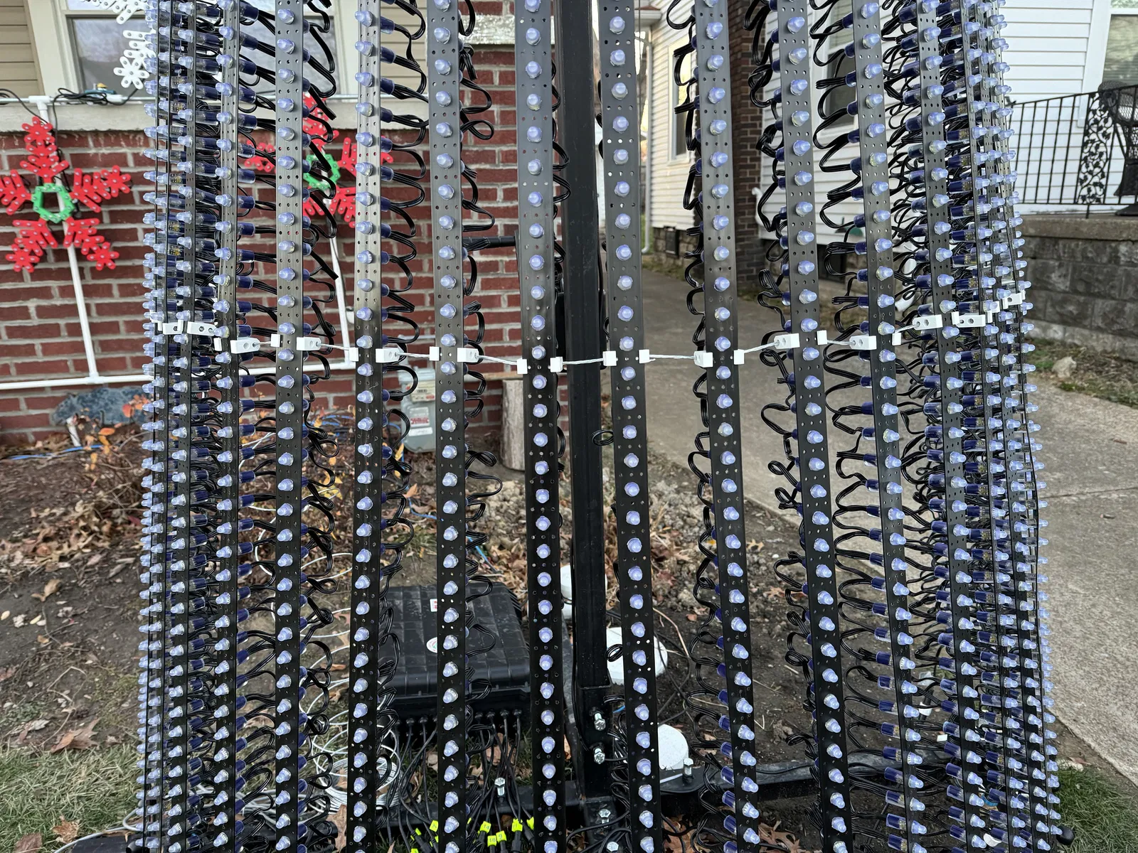 Đây là bộ ổn định megatree gồm hai mảnh, được thiết kế để hoạt động với khoảng cách 1 inch và với thiết kế hai mảnh, bạn có thể lắp nó sau khi đã gắn các pixel. Tôi đã sử dụng dây thép bện cỡ 20 từ Menards.