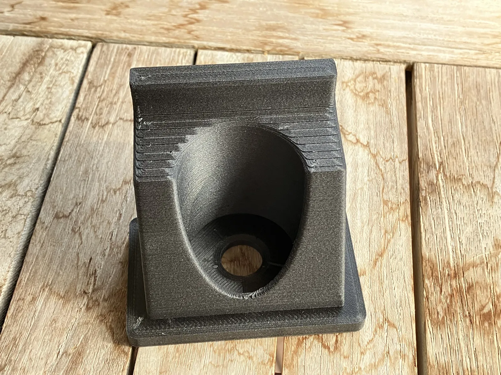 Tôi đã in với bốn lớp vỏ và 20% lưới mật độ. Tôi đặt lớp trên cùng là bảy và lớp dưới cùng là sáu. Tôi đã sử dụng đế hỗ trợ từ khay in để gia cố khu vực bị nhô ra. Tôi có một cuộn Kimya PETG-Carbon nên quyết định sử dụng nó. Các lớp vỏ và mật độ có lẽ là quá nhiều.
