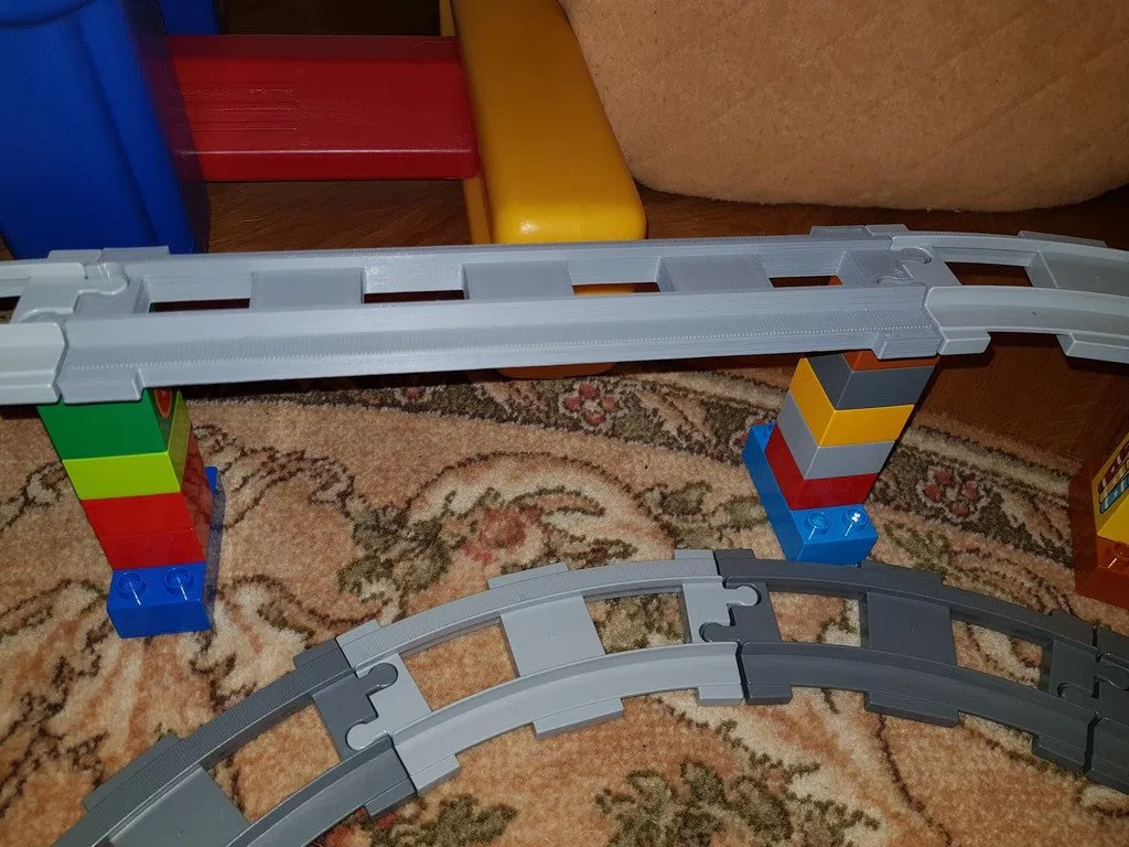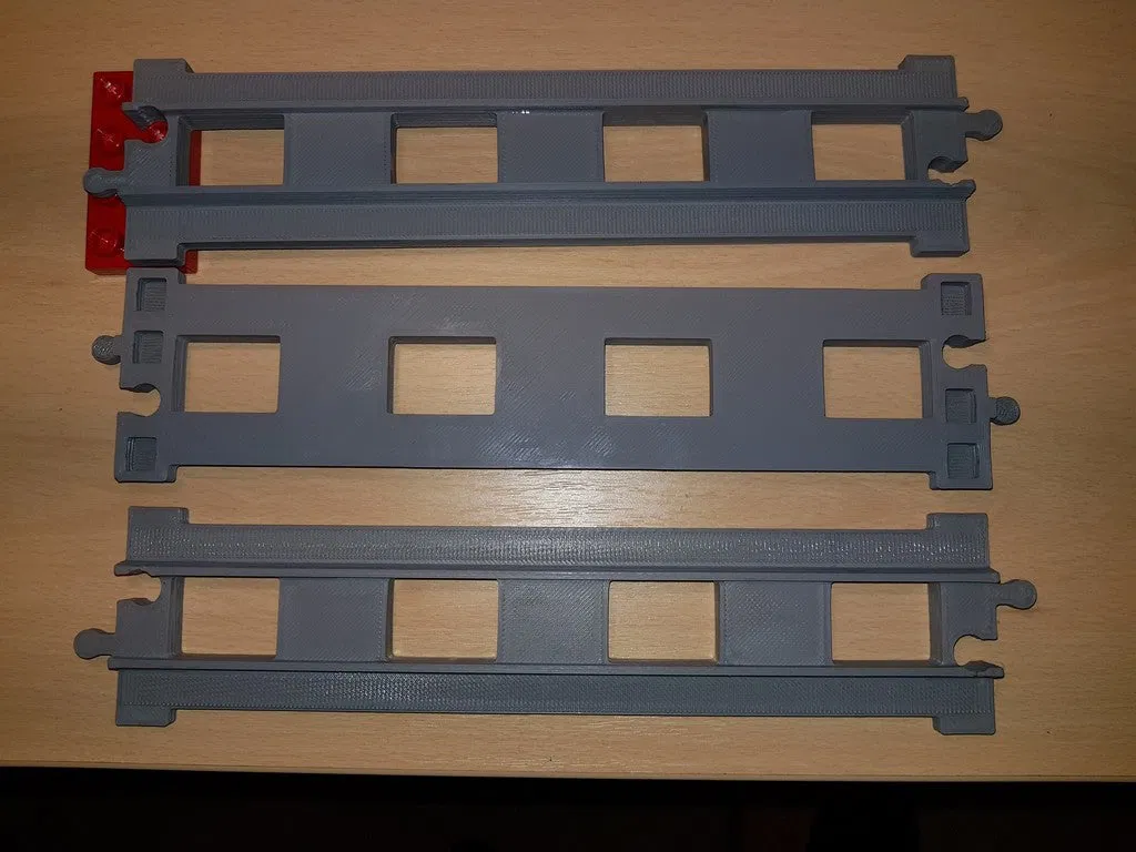 Đường ray xe lửa LEGO Duplo khổ lớn, dạng thẳng, đặc biệt được thiết kế với kích thước gấp đôi để phù hợp làm cầu hoặc các đoạn đường cao. Sản phẩm dễ in, bền chắc và không cần in support.