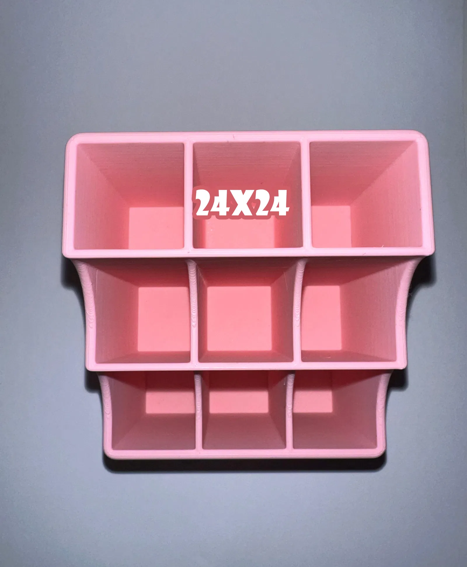 Cái này được thiết kế như một món đồ đi kèm với cái hộp đựng đồ trang điểm kia, nhưng nó cũng có thể dùng tốt như một cái ống cắm bút hoặc bất kỳ loại hộp đựng đồ nào trên bàn làm việc. Nó có 9 ô, mỗi ô có kích thước 24x24 mm.