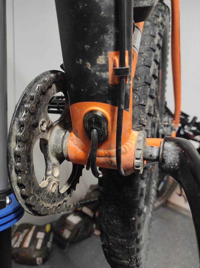 Gioăng Fischer 1723 cho lỗ luồn cáp trên và dưới, dùng để bảo vệ trục đạp. Đây là giải pháp khắc phục lỗi thiết kế lớn của Fischer trên một chiếc xe đạp tuyệt vời. Nên khoan thêm lỗ thoát nước ngưng tụ dưới vỏ trục đạp. In bằng TPU với 15% vật liệu độn.