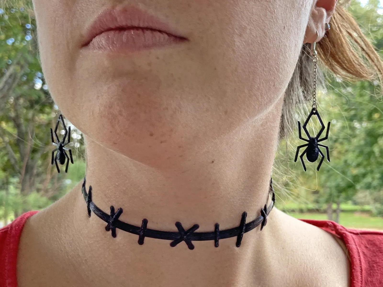 Bông tai nhện treo được làm từ các hình dạng đơn giản.