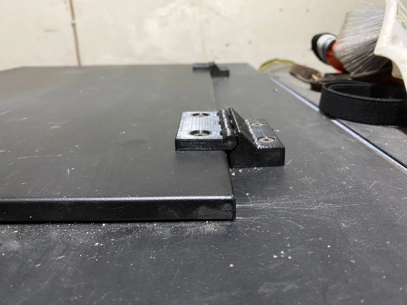 Tui chán cái vụ phải tháo cả cửa khi châm củi viên bếp Baxi, nên tui thiết kế cái bản lề in một mảnh này. Xài ngon 3 năm rồi, lỗ để xài bu lông M6.
