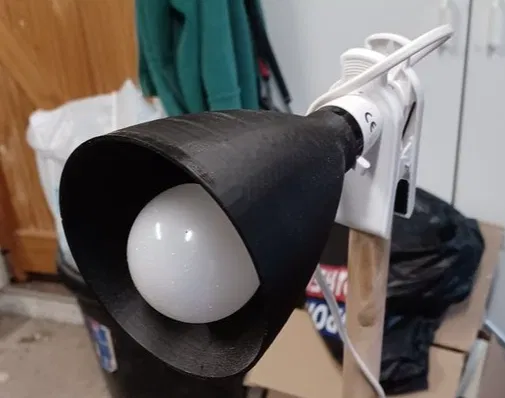 Tui làm cái chụp đèn này để giảm chói mắt khi xài đèn kẹp ở bàn làm việc gara. Chụp đèn có ren, xài vừa đui đèn treo chuẩn UK, in bằng PLA, không cần support.