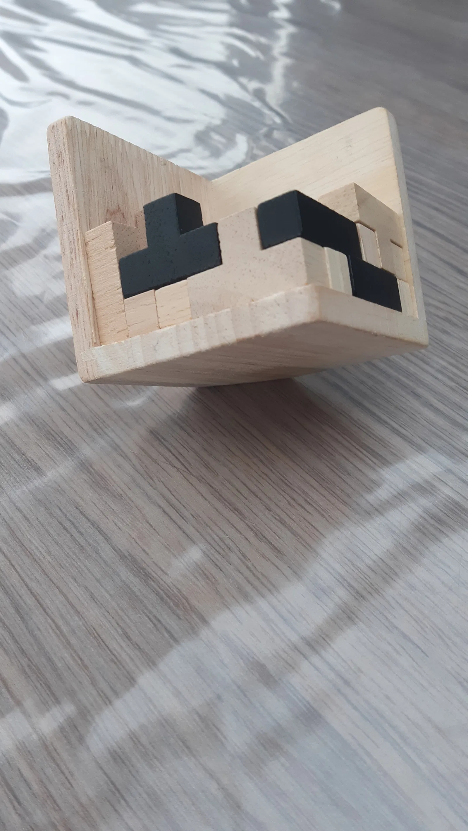 Cùng thử thách bỏ hết các khối vào hộp xem nào! Mô hình hộp xếp hình này bao gồm 54 mảnh ghép. Bạn có thể xem video hướng dẫn trên YouTube nếu chưa tìm ra cách giải.