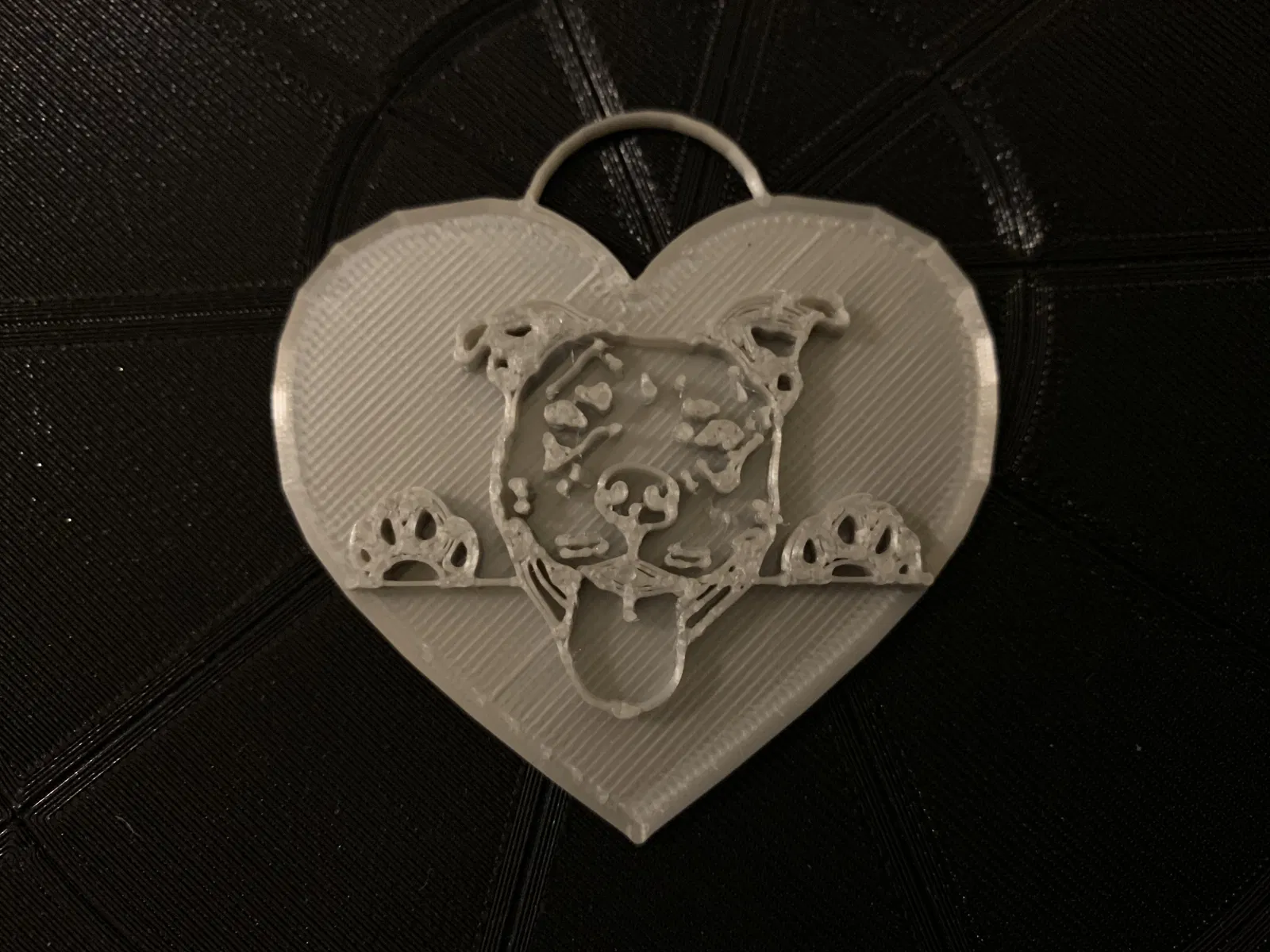Thể hiện tình yêu pit bull của bạn với chiếc móc khoá/mặt dây chuyền này! Ở kích thước gốc, nó rộng khoảng 2 inch. Được in thử nghiệm bằng sợi Inland Silk Silver ở độ cao lớp .2 cho một cuộc thi.