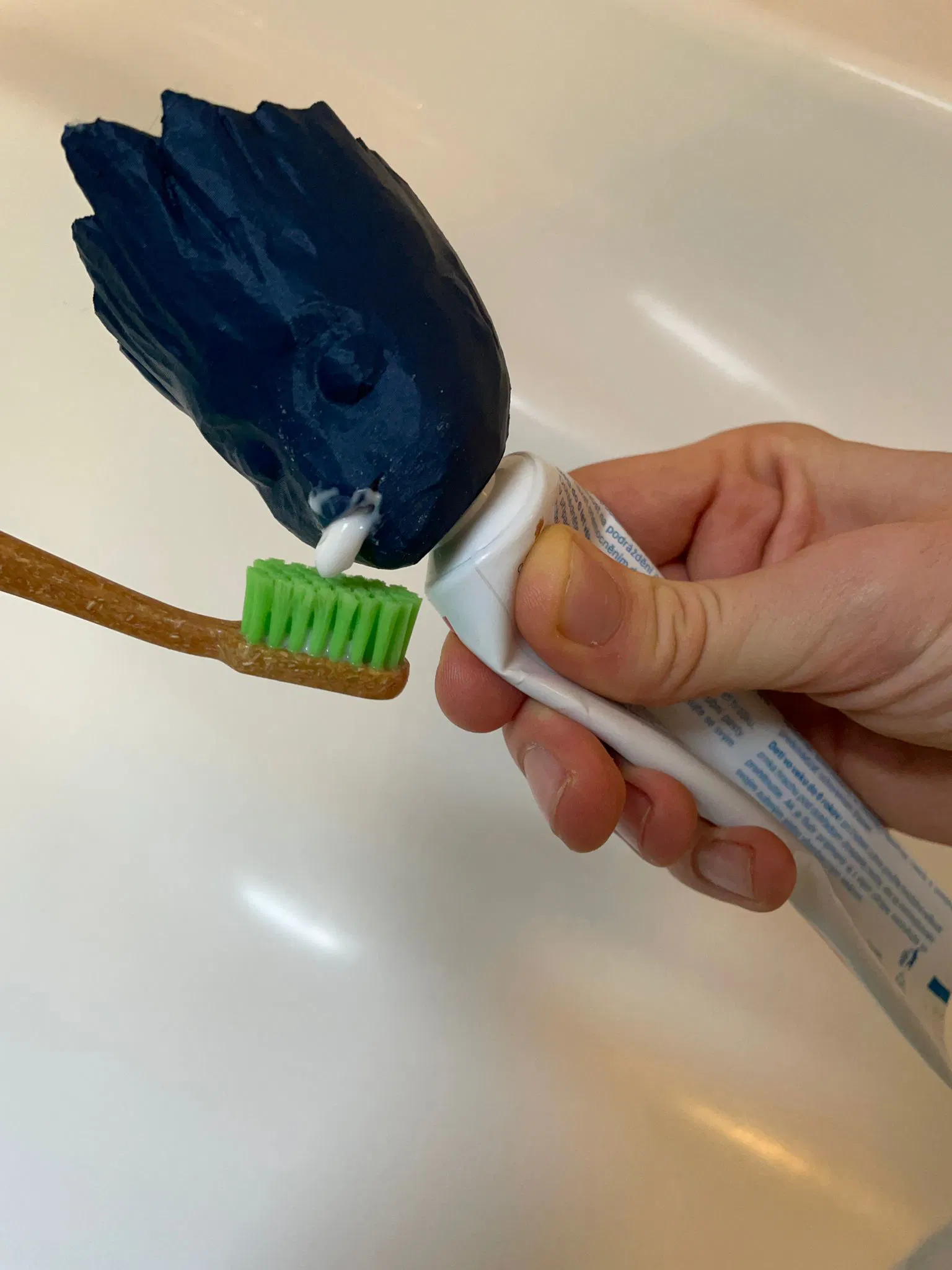 Phiên bản đầu tiên của nắp tuýp kem đánh răng hình Baby Groot, lấy cảm hứng từ phim Vệ Binh Dải Ngân Hà. Nhớ vặn chặt nắp để tránh kem đánh răng bị rò rỉ nhé.