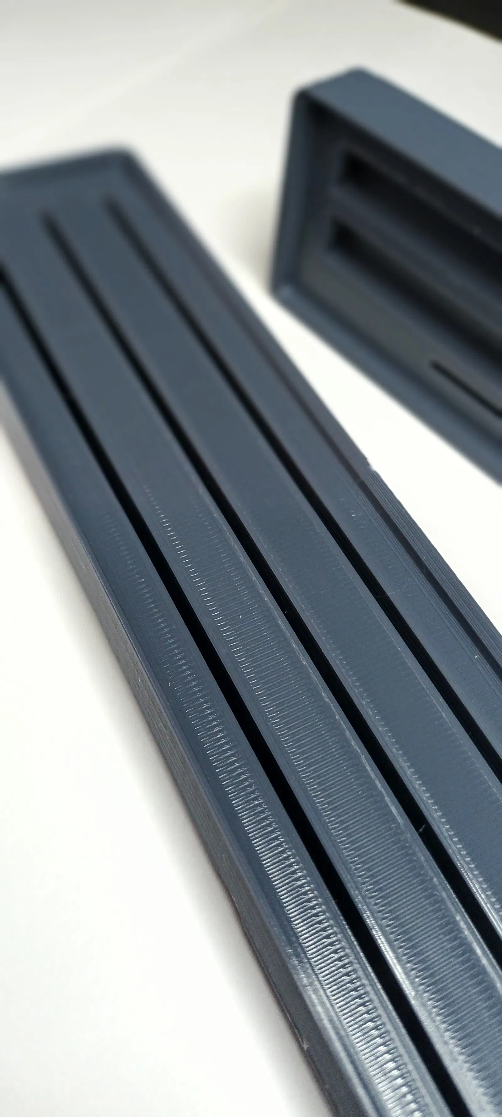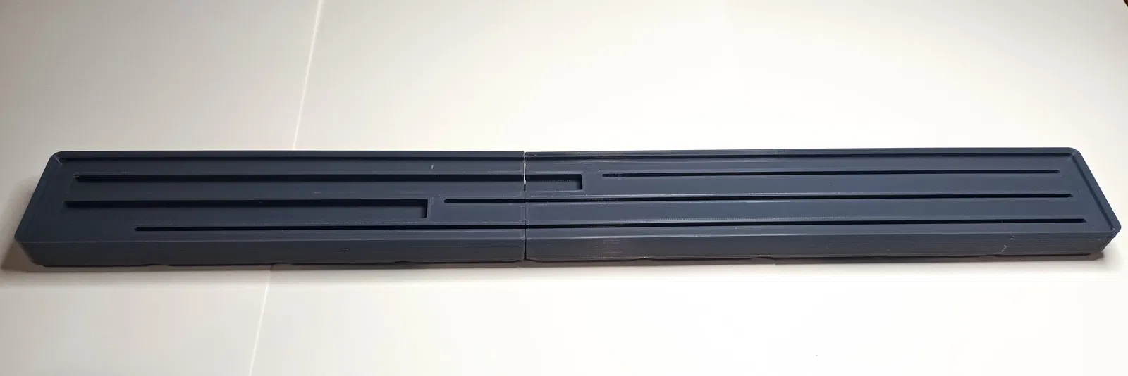 Tui làm cái khuôn giữ thước kẻ và bút chì Gridfinity này vì bàn in của tui nhỏ, giống như trên Ender 3. Bộ tổ chức chia đôi 1x9 này giúp anh em có bàn in nhỏ vẫn in được. In xong có thể dán lại hoặc để rời đều được.