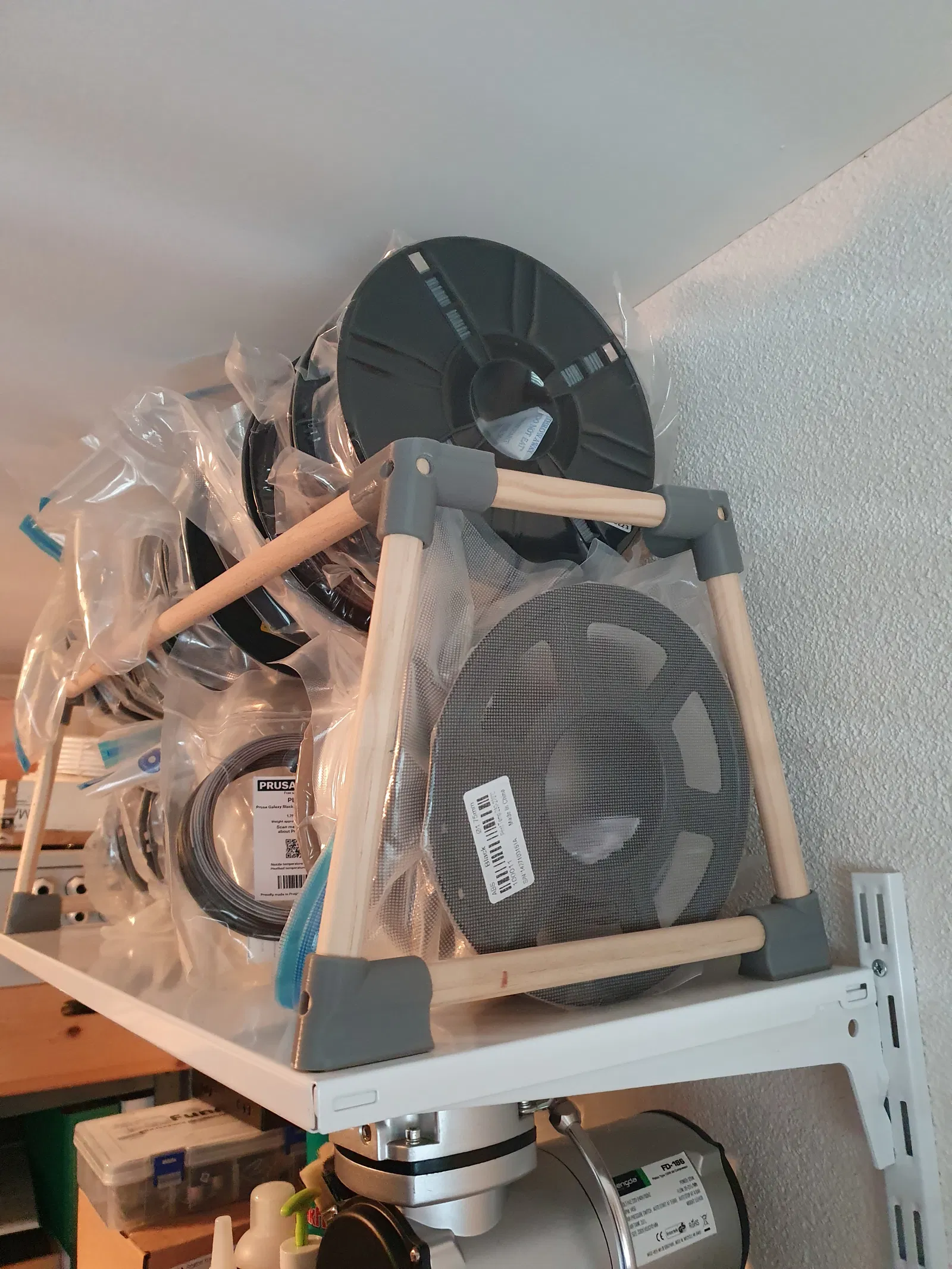 Góc khung có thể lắp ráp với gỗ tròn để tạo thành khung đựng filament.