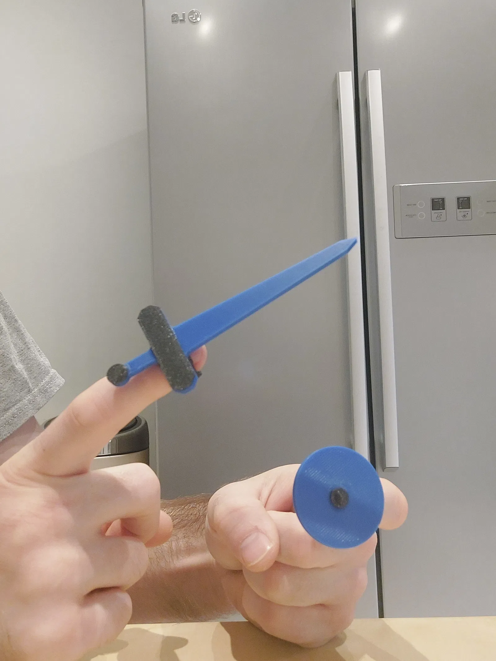 Bộ kiếm và khiên đồ chơi đeo ngón tay. In không cần support, đặt phẳng trên bàn in, thay đổi tỉ lệ để vừa ngón tay. Tuyệt vời để chơi chiến tranh ngón tay!