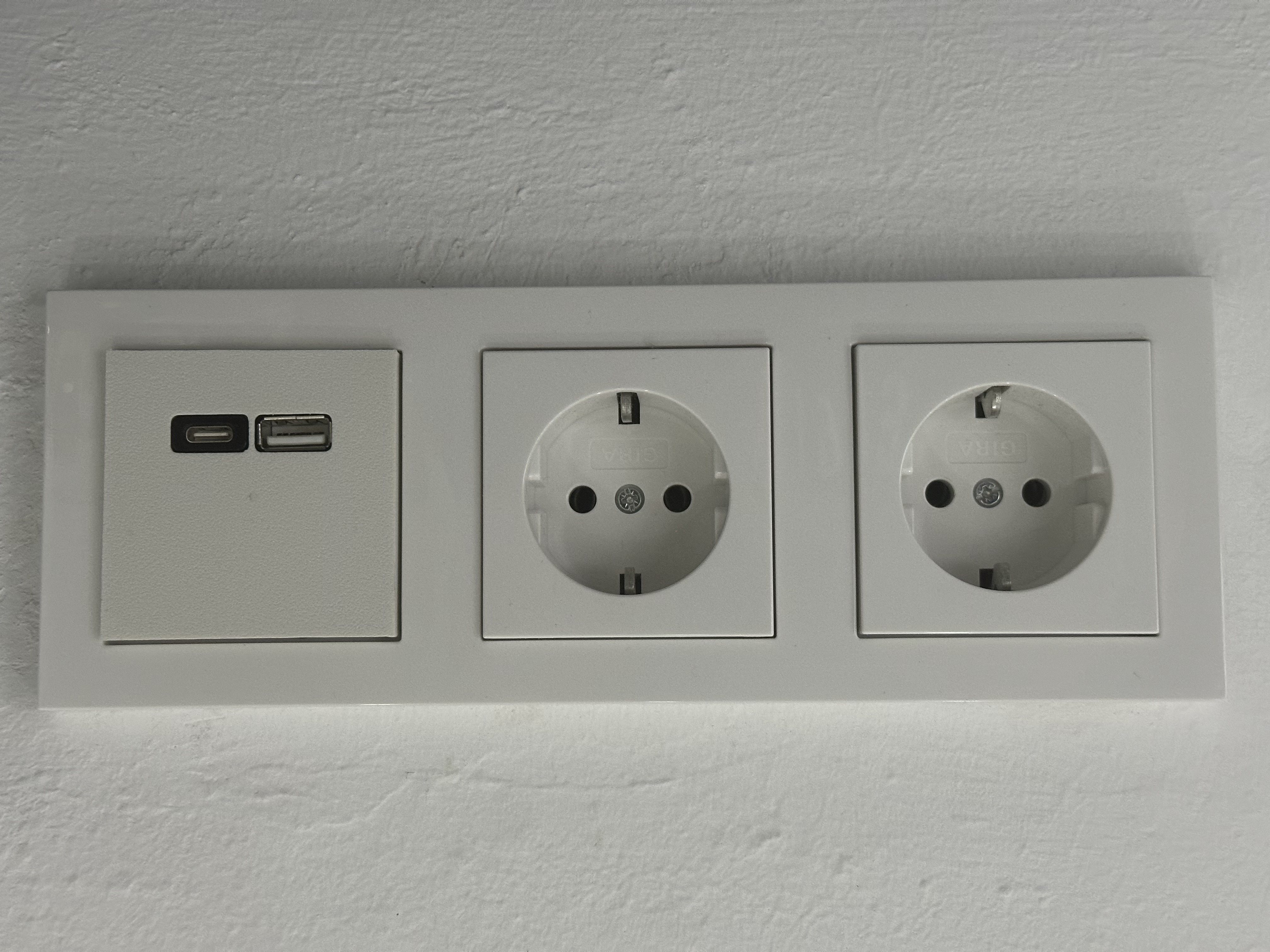 Tiếc là GIRA không có ổ cắm USB phù hợp cho nhu cầu của mình (USB-C PD với >5V). Mình đã lấy một cái của Merten. Đây là mặt trước phù hợp để tích hợp vào GIRA System 55.