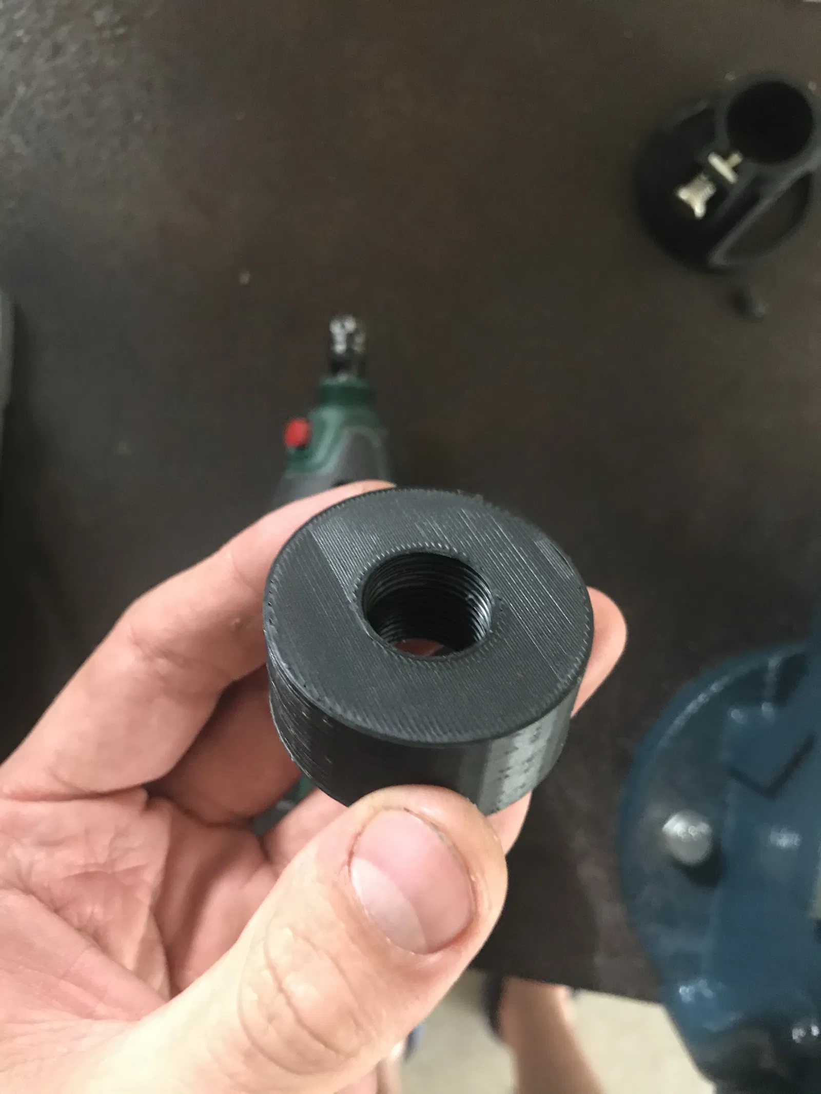 Cái áo ren đơn giản cho máy phay (Parkside) gắn vào chân đế máy khoan.