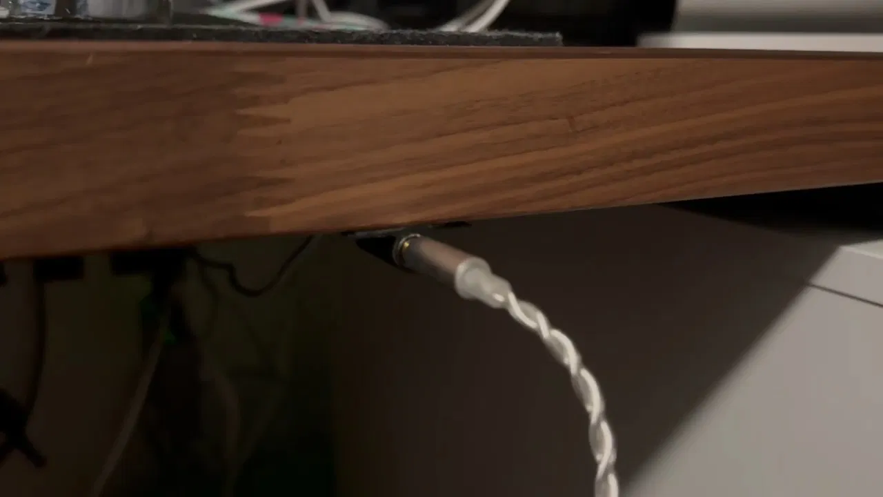 Treo dây cáp nối dài 3.5mm aux dưới gầm bàn để cắm tai nghe một cách gọn gàng!