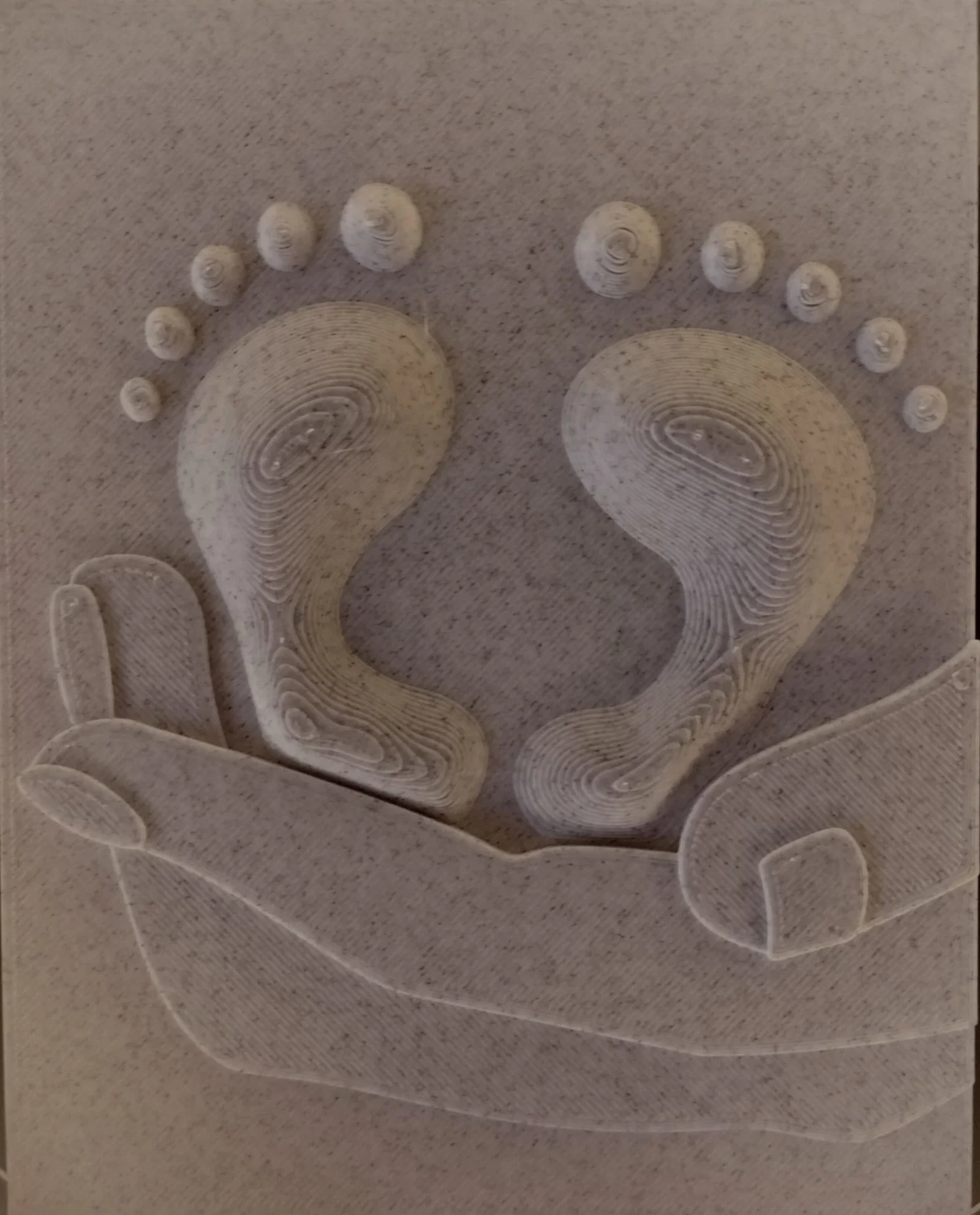 Mô hình trang trí bàn chân bé xinh xắn, thích hợp làm quà tặng cho bố mẹ sắp sinh hoặc vừa có con nhỏ. Phiên bản nhỏ (Babyfeet small.stl) đã được thu nhỏ 55% và in bằng sợi PLA Marble Grey, kèm đế đỡ đi kèm.