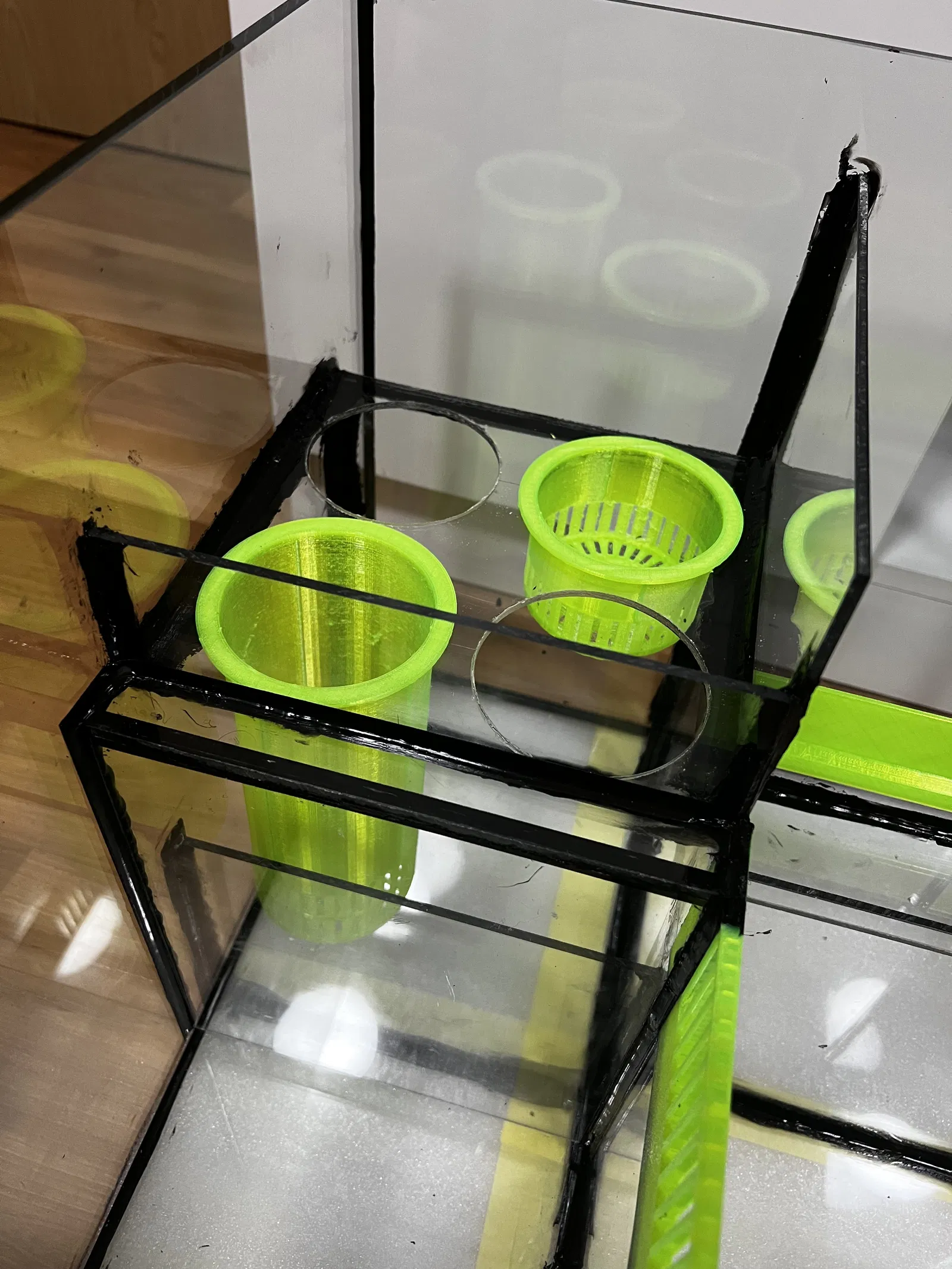 Cái cốc lọc này lấy cảm hứng từ Crivo_pt. Nó là một cái cốc lọc tương tự như của RedSea, mà giá lại rẻ hơn 500,- CZK. Tuy nhiên, nó được chỉnh sửa lại cho lỗ khoan 78mm và có chiều dài 180mm, đây là kích thước tối đa có thể in trên Prusa MINI. Nhờ có việc thu nhỏ này, 4 cái cốc lọc này có thể đặt vừa khít cạnh nhau. Để in, mình chọn chế độ hỗ trợ dạng cây (tree supports) vì nó tiết kiệm được rất nhiều vật liệu cũng như thời gian.