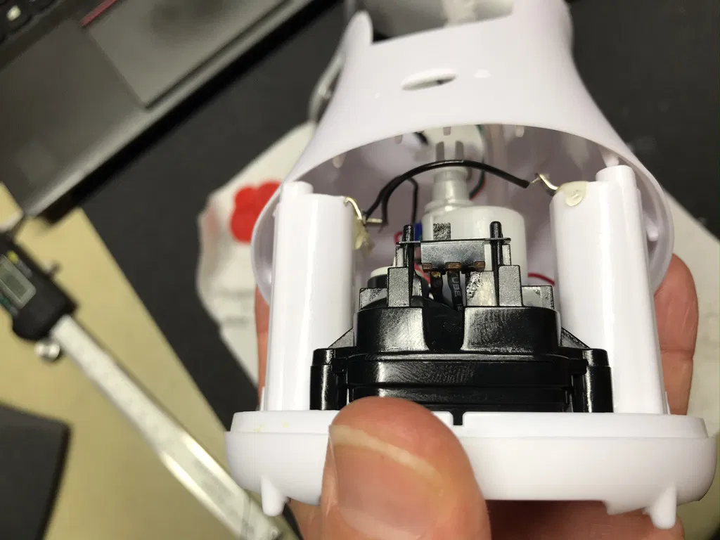 lắp lại hộp ngoài, định vị lại dây điện và đèn led như trên hình, vặn các vít trở lại như trên hình bằng cách sử dụng trọng lực, chúng sẽ tự trượt vào vị trí, chỉ cần vặn chúng.