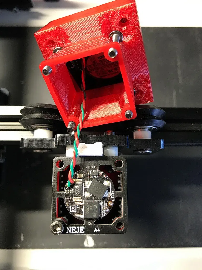 Cải thiện tản nhiệt và giảm tiếng ồn cho laser Neje Master 2 bằng cách thay thế quạt ồn ào bằng quạt 40mm êm hơn. Giúp bảo vệ laser và tăng tuổi thọ.