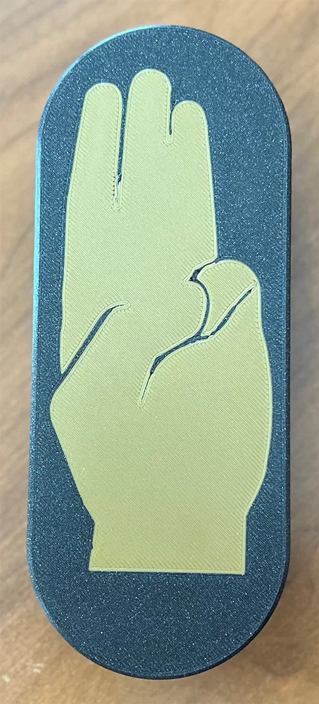 Phiên bản Hunger Games của hộp bút "shutter box" từ 3DPrinty, được thiết kế để in bằng MMU. Cũng có thể in bằng máy đùn đơn với "virtual MMU".