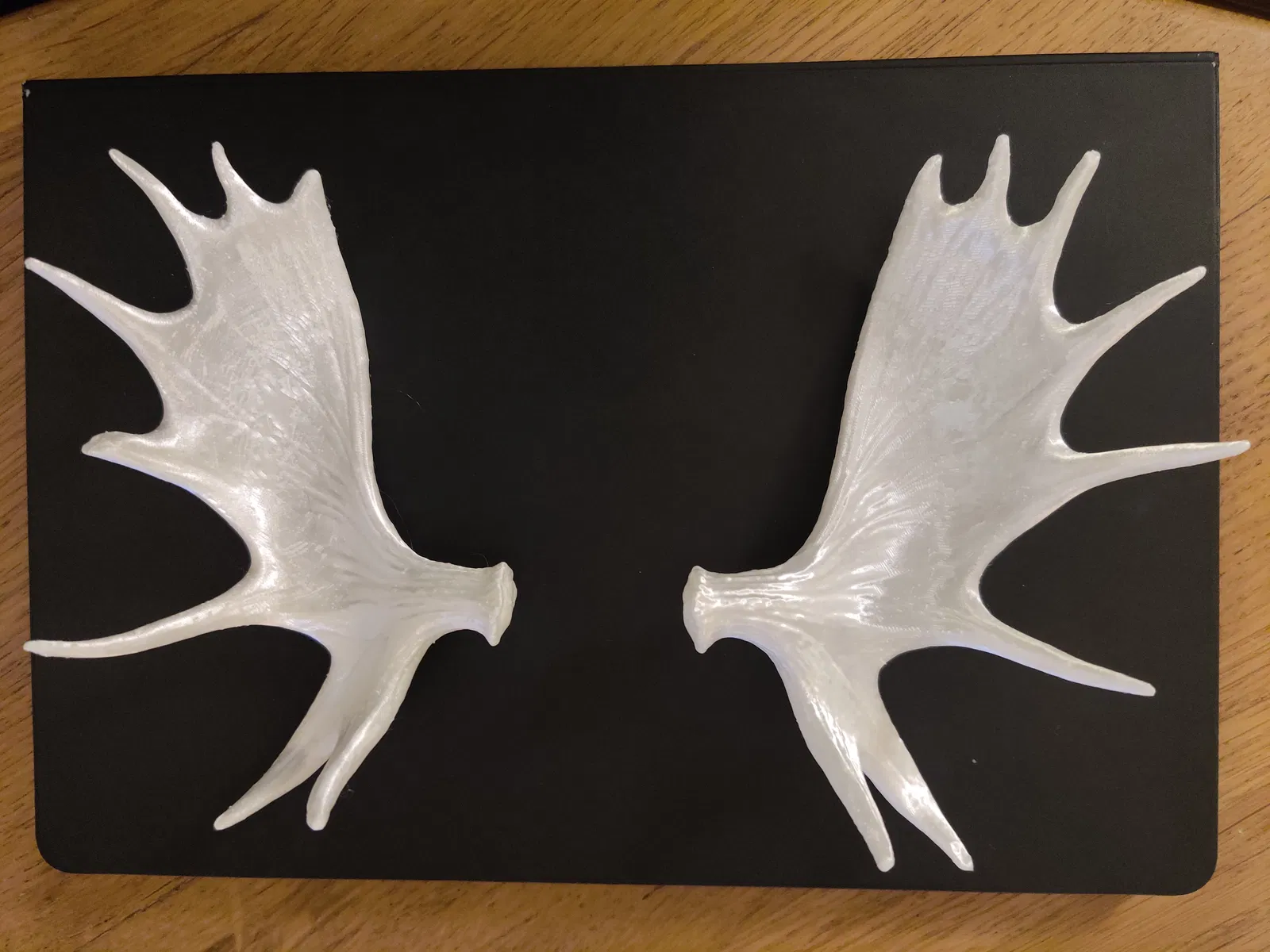 Lấy cảm hứng từ bản scan gạc nai sừng tấm của Old_Tekkie (với Kiri Engine), tôi đã quyết định làm điều tương tự. Cách đây khoảng 42 năm, chúng tôi đã tìm thấy một bộ gạc nai sừng tấm (Thụy Điển) rất đẹp này, treo trên cây! Chúng tôi không bao giờ tìm thấy nửa còn lại, nhưng nhờ công nghệ hiện đại (Kiri engine, Blender), tôi đã có thể quét bản gốc và tạo ra nửa còn lại bằng cách thực hiện một số thay đổi tinh tế đối với bản gốc (chúng không bao giờ giống nhau 100%). Tôi cũng làm 'gãy' một trong những cái nhánh, vì những cái nhánh bị gãy xảy ra thường xuyên hơn (chúng tôi đã tìm thấy hàng trăm cái khác trong những năm sau đó). Bây giờ chỉ còn việc tìm một chiếc máy in đủ lớn để in nó với kích thước thực tế! Link đến gạc nai sừng tấm của Old_Tekkie: