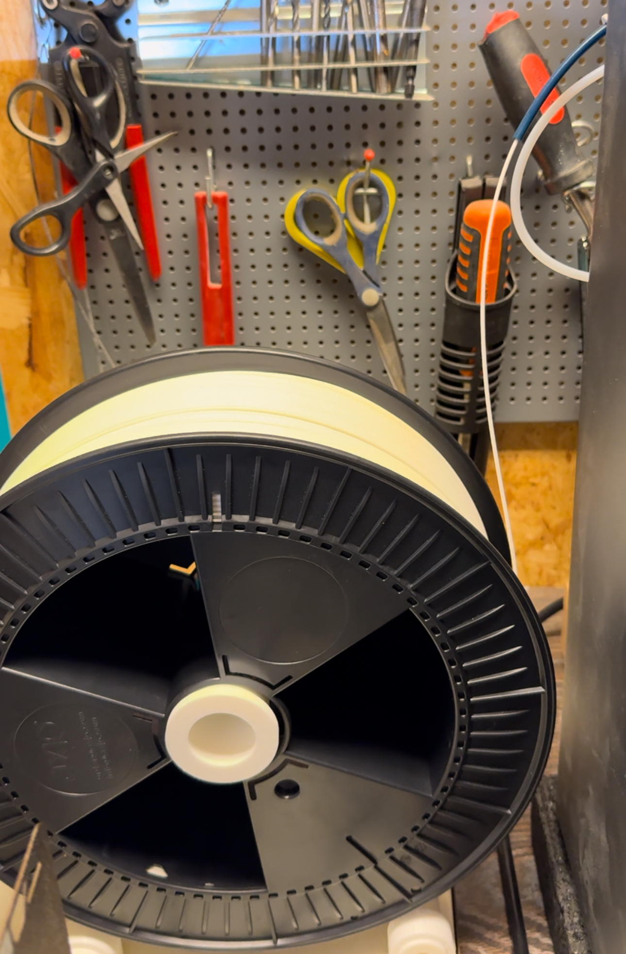 Mua cuộn PLA 2,3kg về xài mà cuộn này bự quá trời! Tui mới vẽ cái giá đỡ này trong Fusion để đựng nó. File Fusion có sẵn, anh em cứ tải về chỉnh sửa theo ý muốn nha.