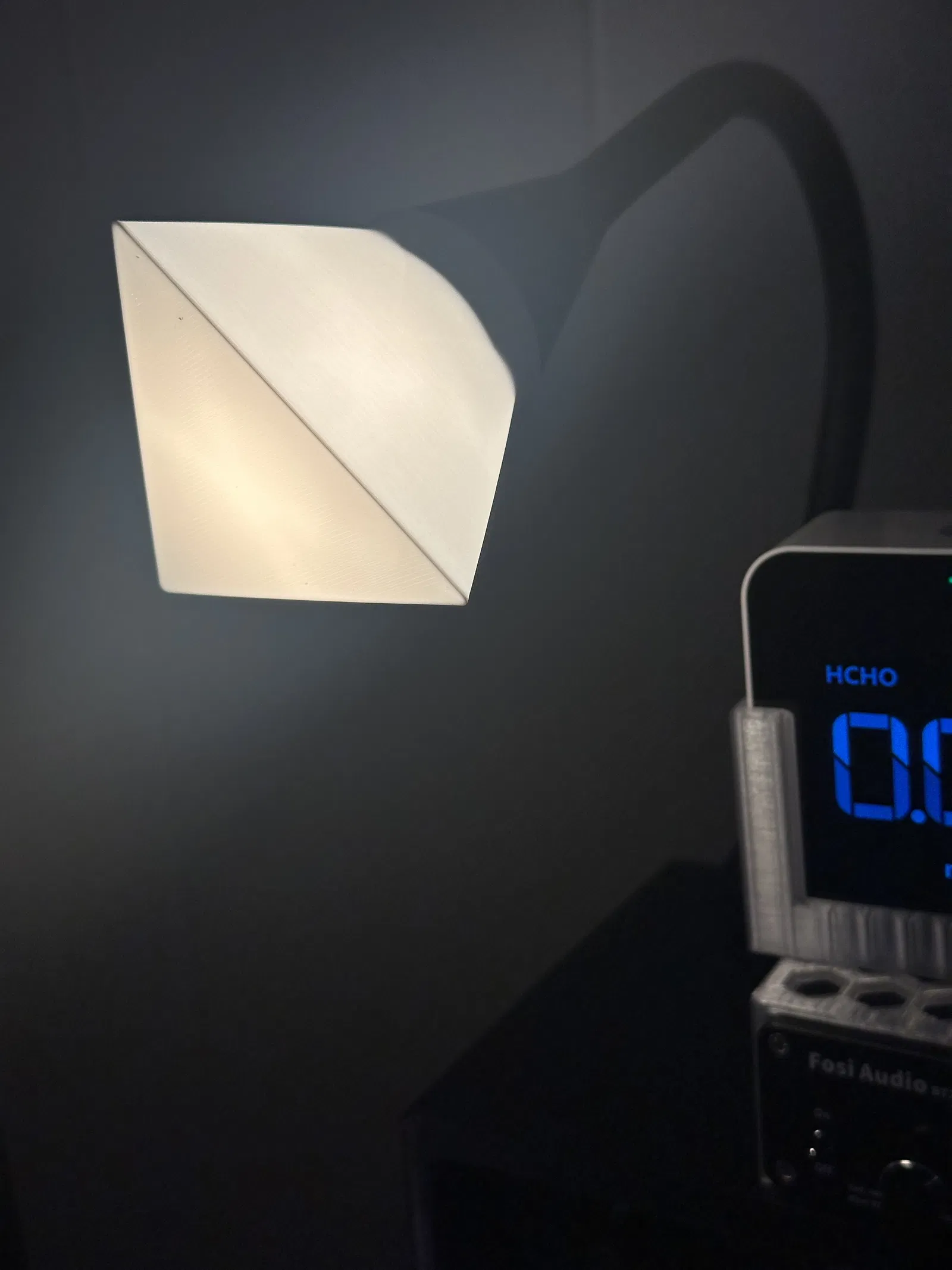 Cái đèn Ikea NÄVLINGE chiếu ra một vùng sáng hẹp lắm. Tui làm cái bộ khuếch tán hình tam giác này để làm cho cái đèn dễ dàng chiếu sáng khu vực hơn. Nếu căn chỉnh đúng thì cái bộ phận này sẽ vừa khít với đèn của bạn. In bằng vase mode với PLA màu trắng.