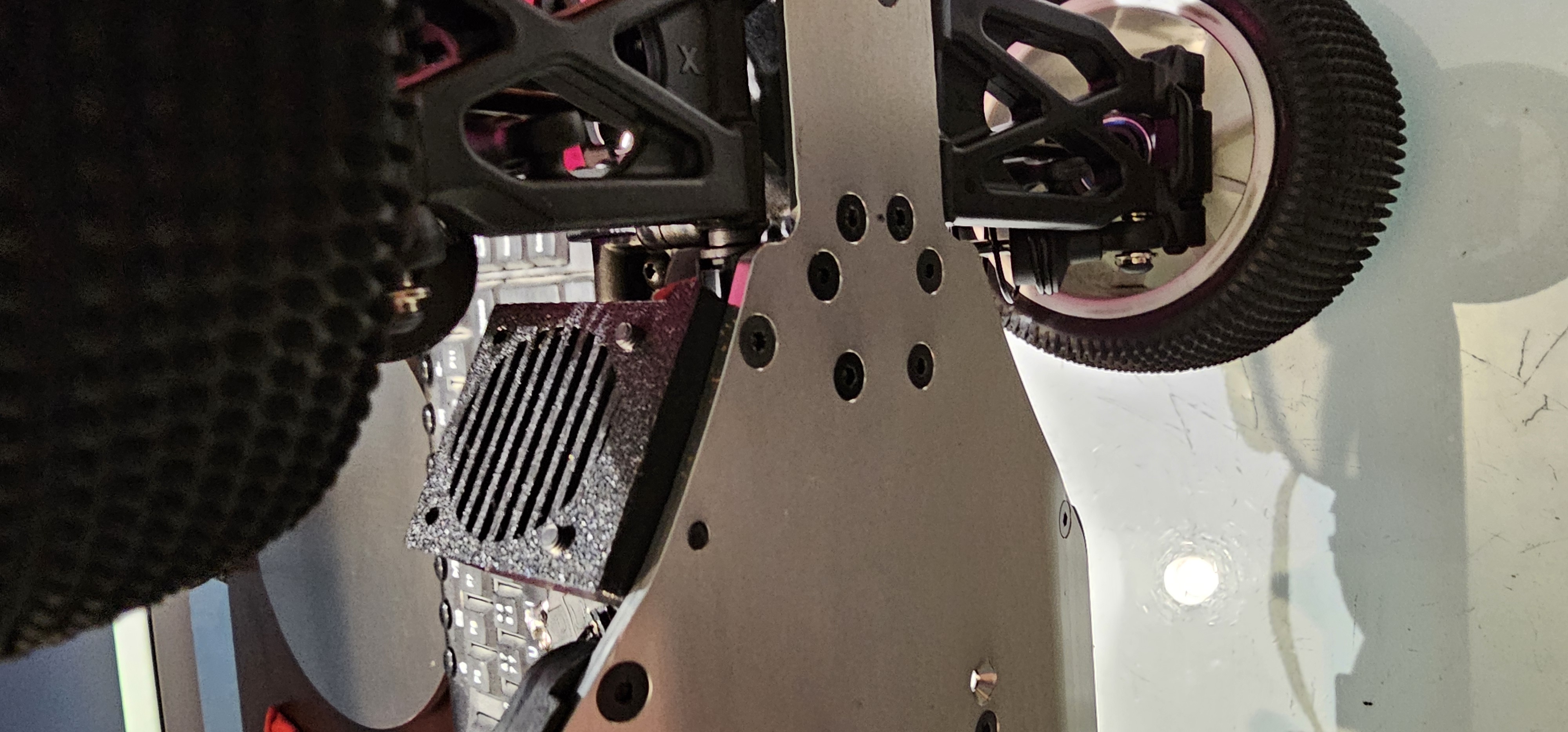 Chi tiết giá đỡ quạt cho xe Xray XB2, được thiết kế để lắp đặt thêm quạt làm mát, giúp động cơ hoạt động ổn định hơn. Mã #24, phù hợp cho các tay chơi Xray XB2.