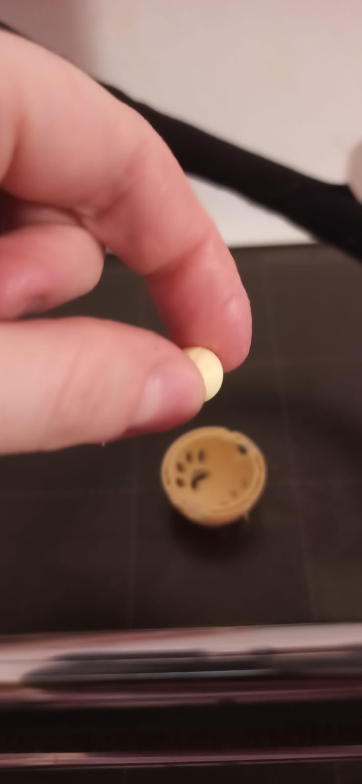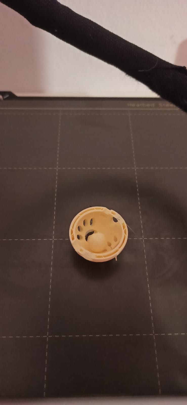 Quả bóng có lục lạc: PLA, 30%-60% infill, có brim, không cần supports