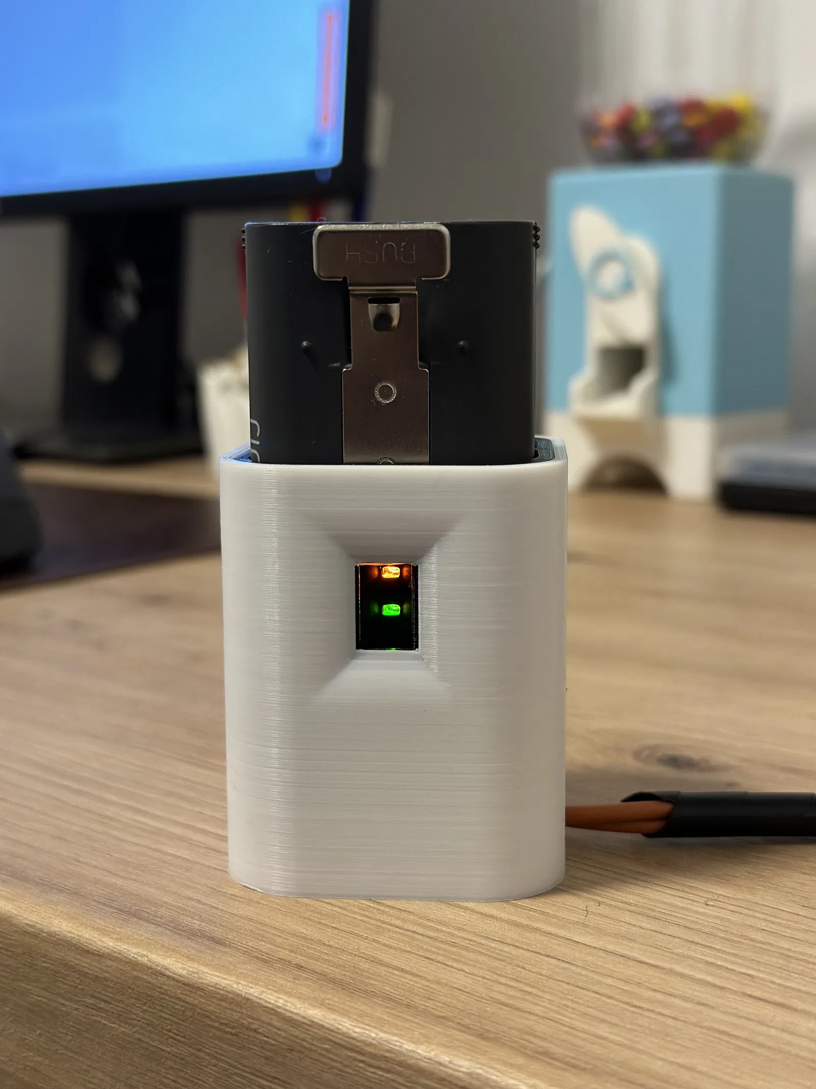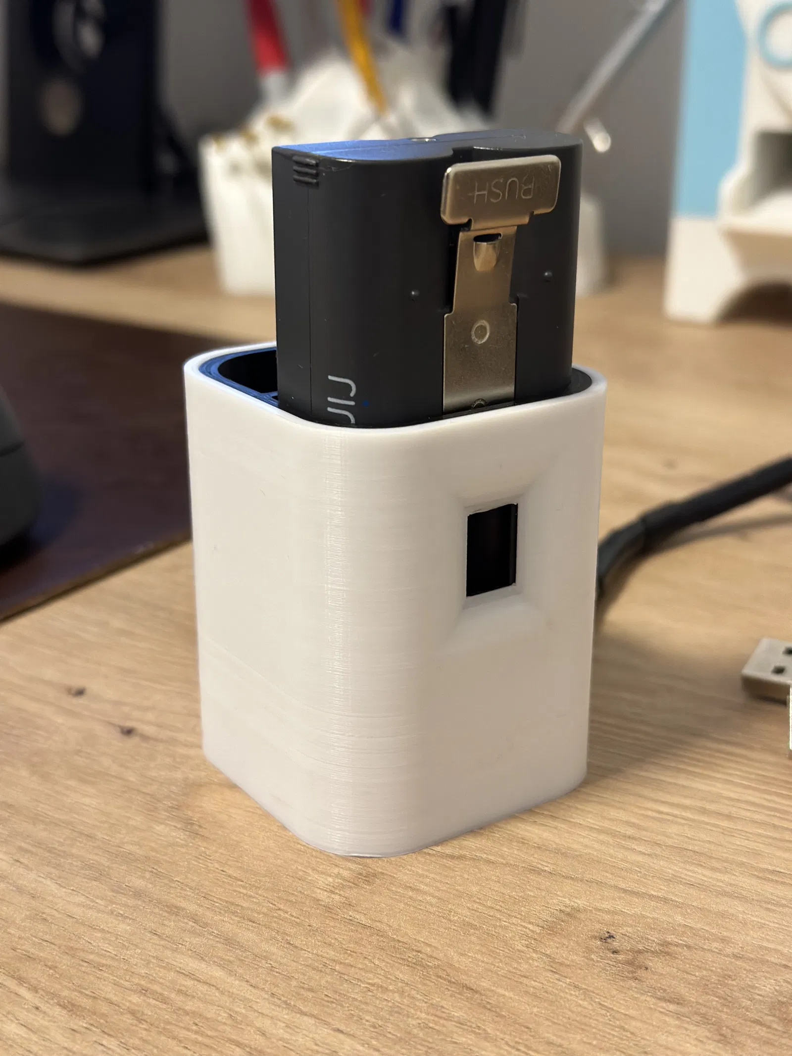 Thiết kế gồm 2 phần để bạn có thể in 2 màu. Tương thích với cáp sạc tiêu chuẩn. Bạn có thể quan sát xem pin đã sạc đầy chưa nhờ các ô cửa sổ nhỏ