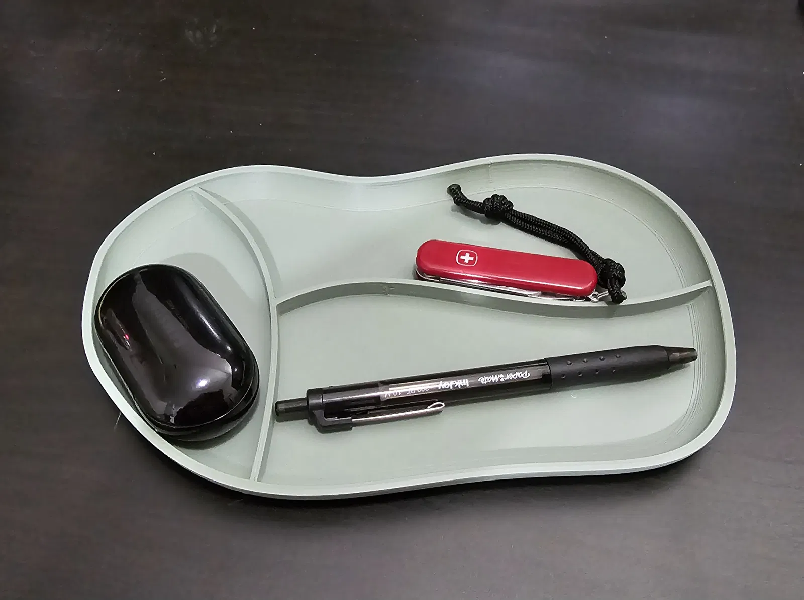 Khay bàn cong có vách ngăn là một giải pháp lưu trữ tiện lợi, giúp bàn làm việc của bạn luôn gọn gàng. Thiết kế cong độc đáo và vách ngăn thông minh, bạn có thể sắp xếp bút, kẹp giấy, và các vật dụng nhỏ khác một cách ngăn nắp.