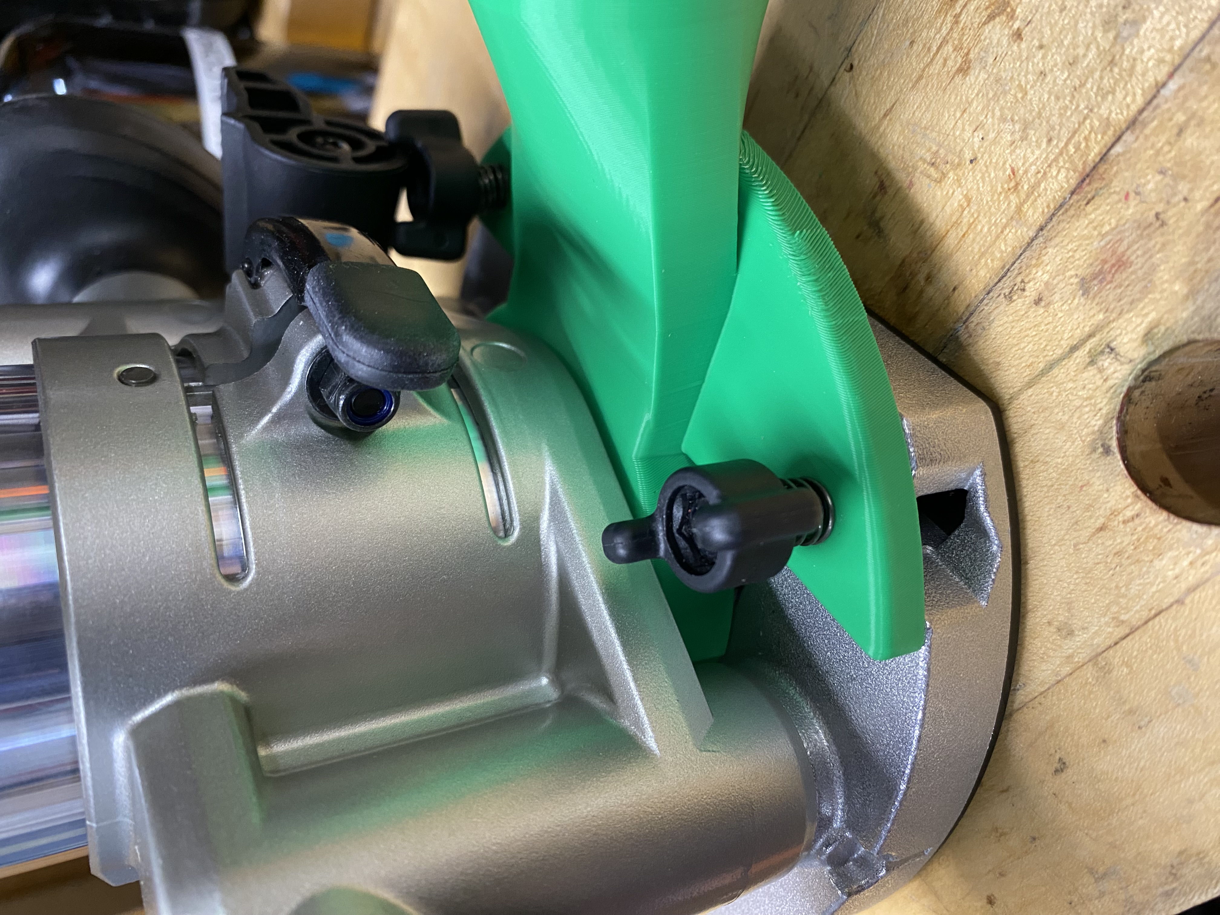 Cái này in ra là để gắn vô cái đế của máy phay gỗ Makita DRT50 (dùng pin) và RT0701 (dùng điện) loại 1/4 inch. Cổng hút bụi này được thiết kế để vừa với ống hút bụi của Festool. Đường kính trong (ID) bắt đầu từ 33 mm và hơi loe ra một chút để gắn khít hơn. Bạn có thể in theo kiểu nằm hoặc đứng. Dù in kiểu nào, tôi khuyên bạn nên dùng tree supports. Cá nhân tôi thấy in đứng cho ra kết quả tốt nhất và ít tốn support nhất.