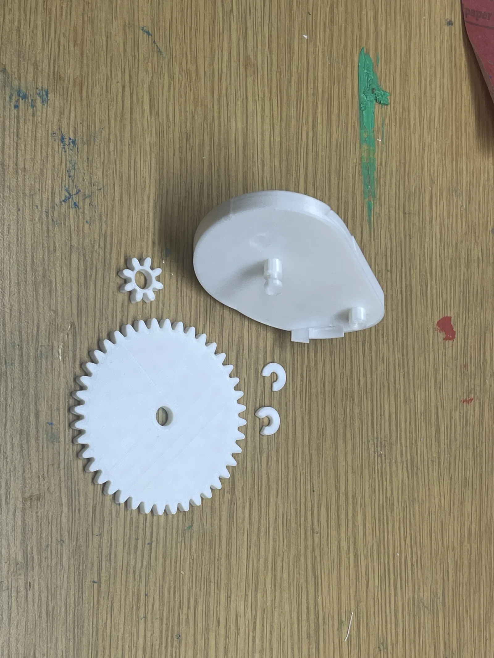 Tao khoái làm mấy cái bánh răng nên là tao ghép 2 cái lại với nhau, thêm cái cóc cò với cái nhẫn cho ngón tay vô để làm cái đồ chơi fidget này. Bánh răng bự quay thì bánh răng nhỏ quay nhanh gấp 5 lần.