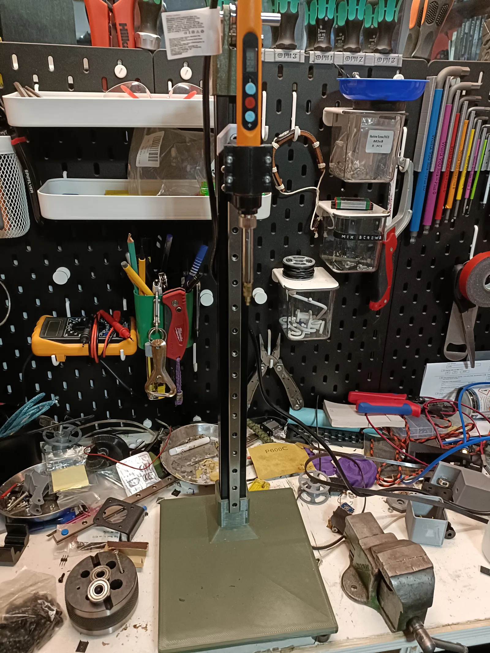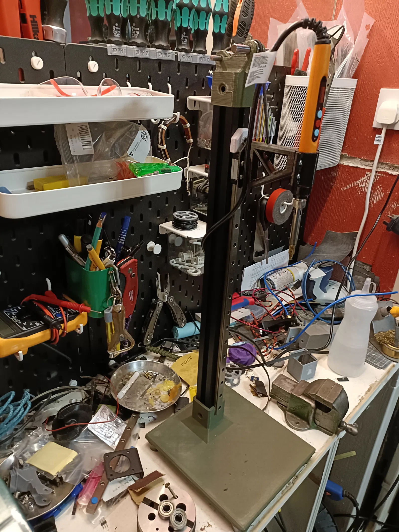Bộ máy ép nhiệt ren tùy chỉnh, sử dụng ray tuyến tính mgn12 và trục trượt mgn12c để tạo lực ép ổn định. Kèm theo danh sách vật liệu chi tiết và hướng dẫn tăng lực căng bằng dây thun.