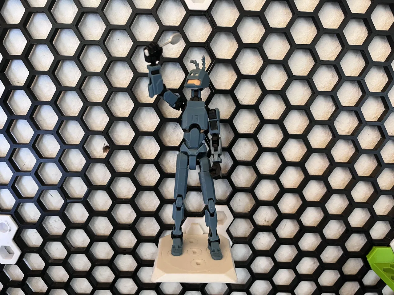 Nên tui mới thiết kế cái món này để gắn cái “DUMMY 13 - Acrobatics pedestal - Pose stand” vô cái 'Honeycomb storage wall'.
